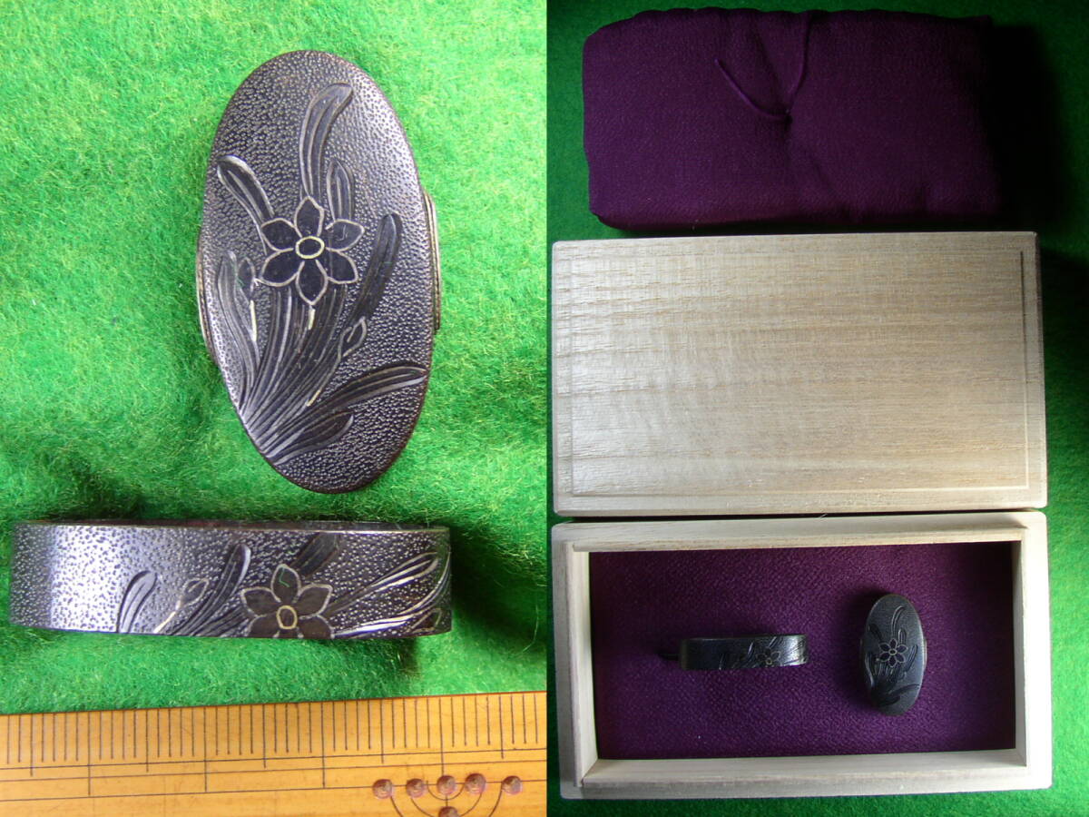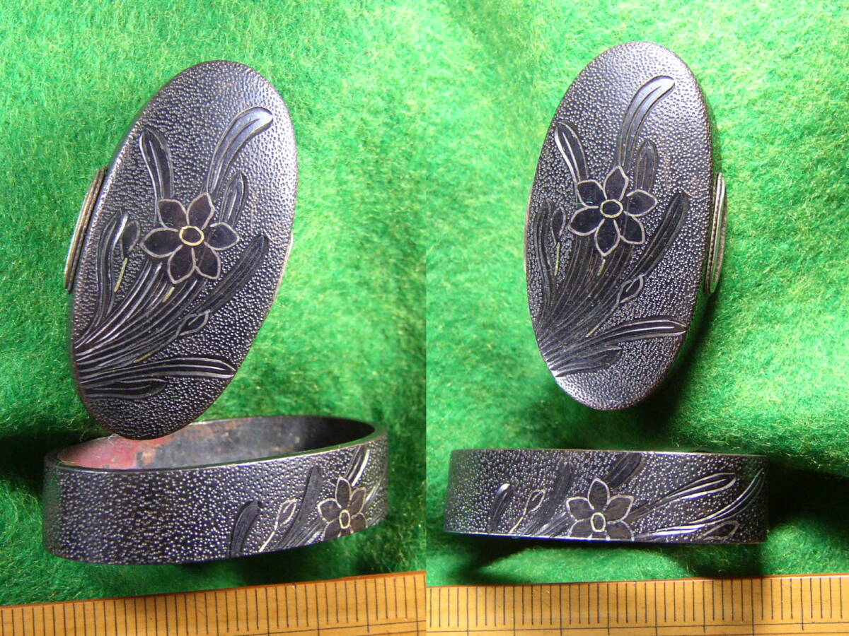 「蘭の図」を揺れ動きを感じる如く表現してあり「蘭」の「葉」の「毛彫」と「茎・花」の「金銀平象嵌」は誠に繊細且つ丁寧に「品位」高く仕立ててあり出来栄え「見事」です。