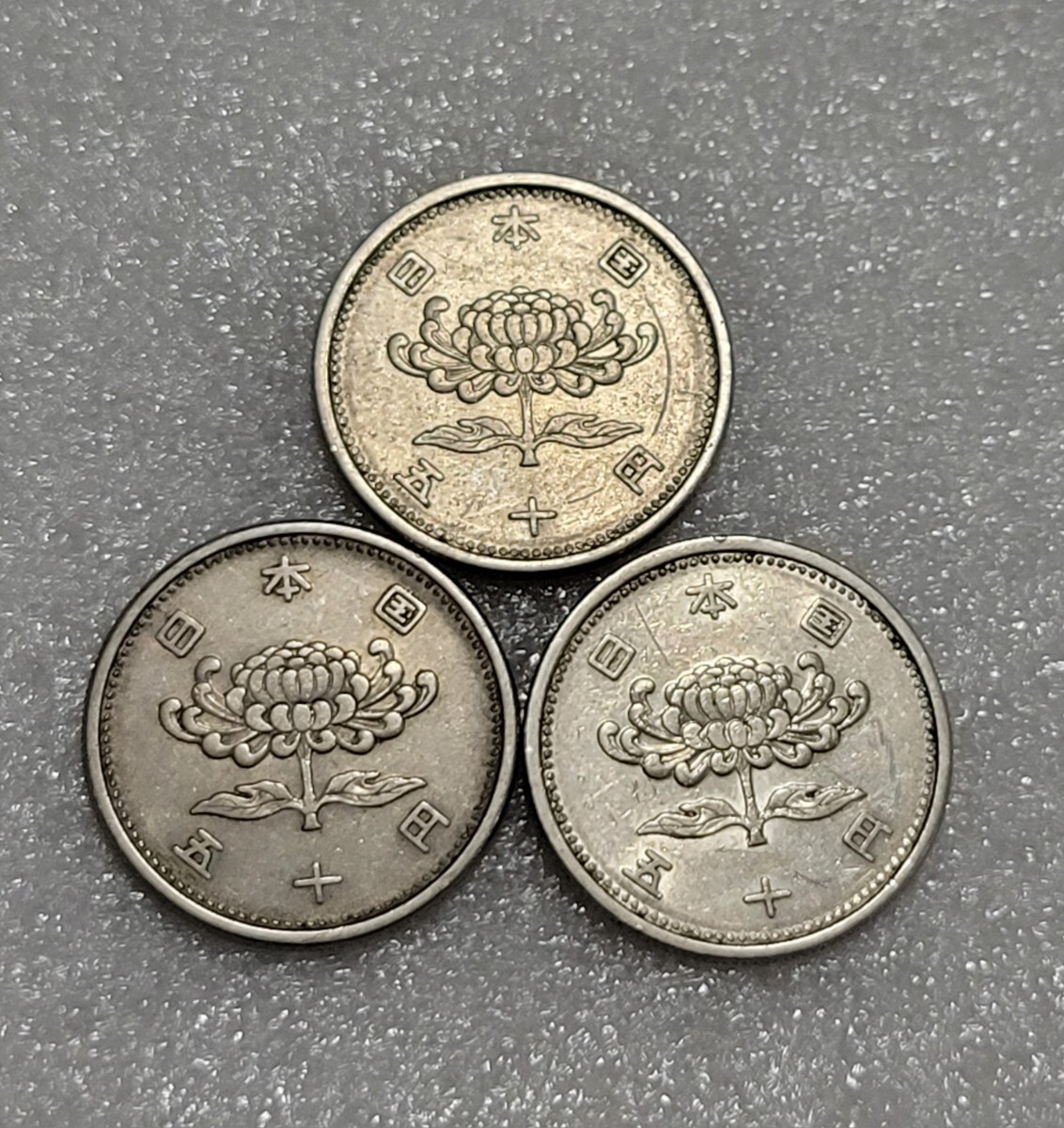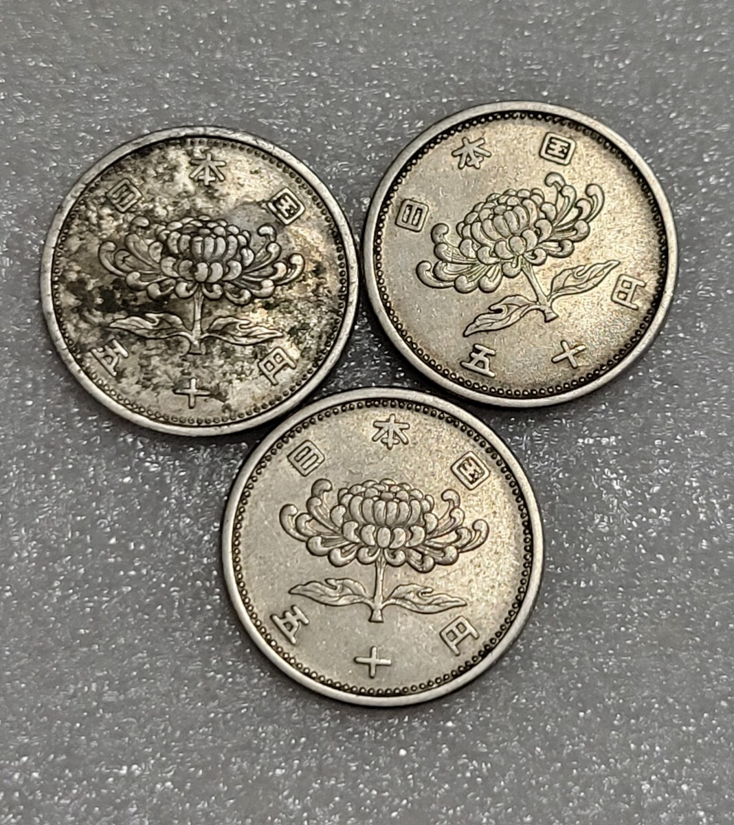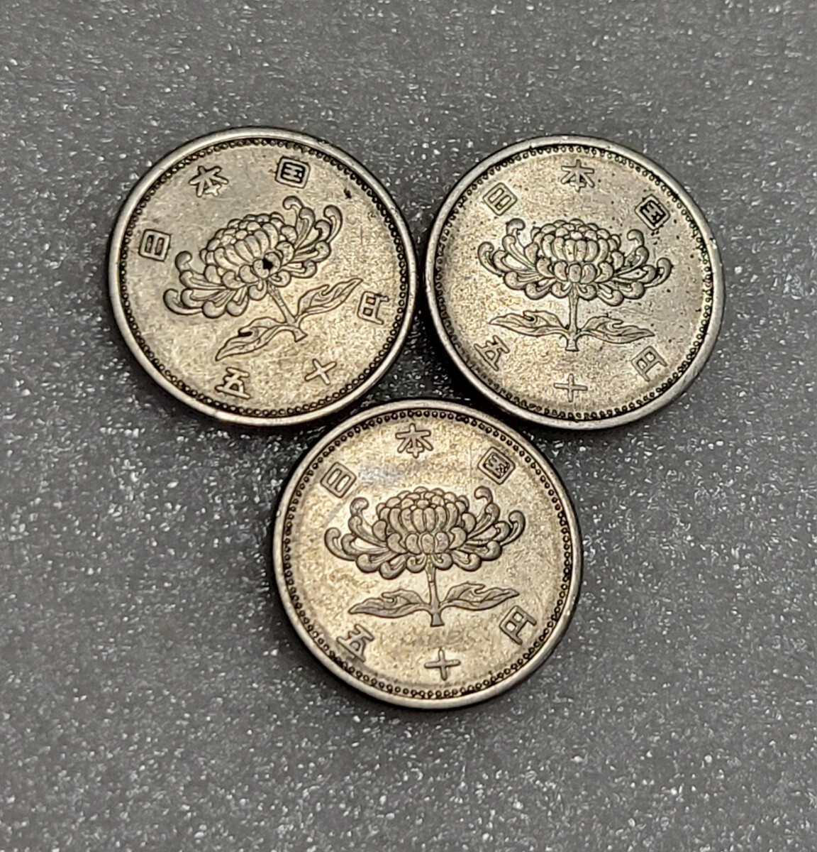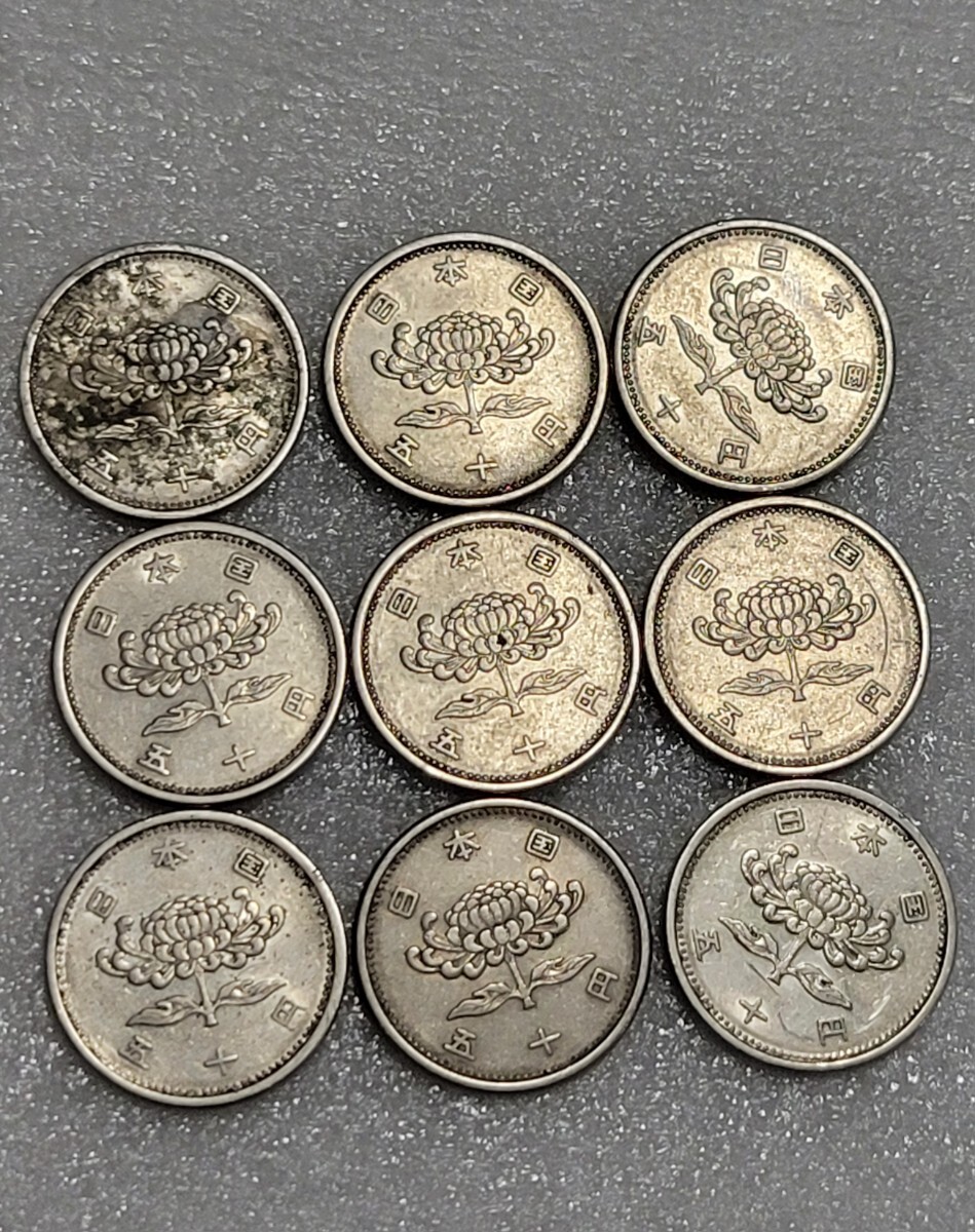 菊穴ナシ 旧50円硬貨 9枚セット ニッケル貨 昭和30 ~ 31年(1955 ~ 56年)日本 現行品