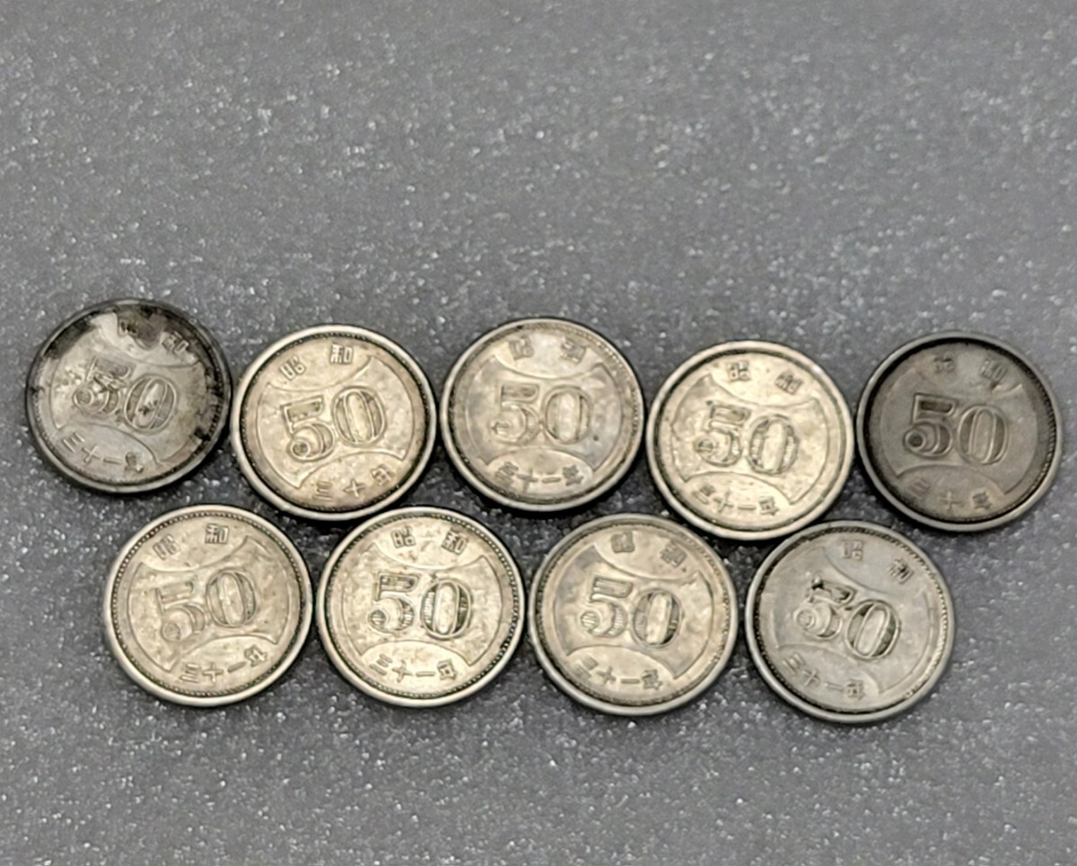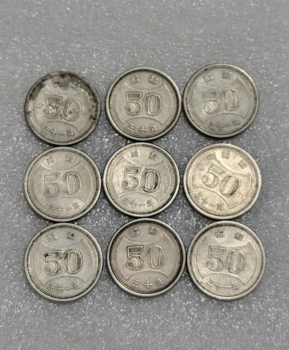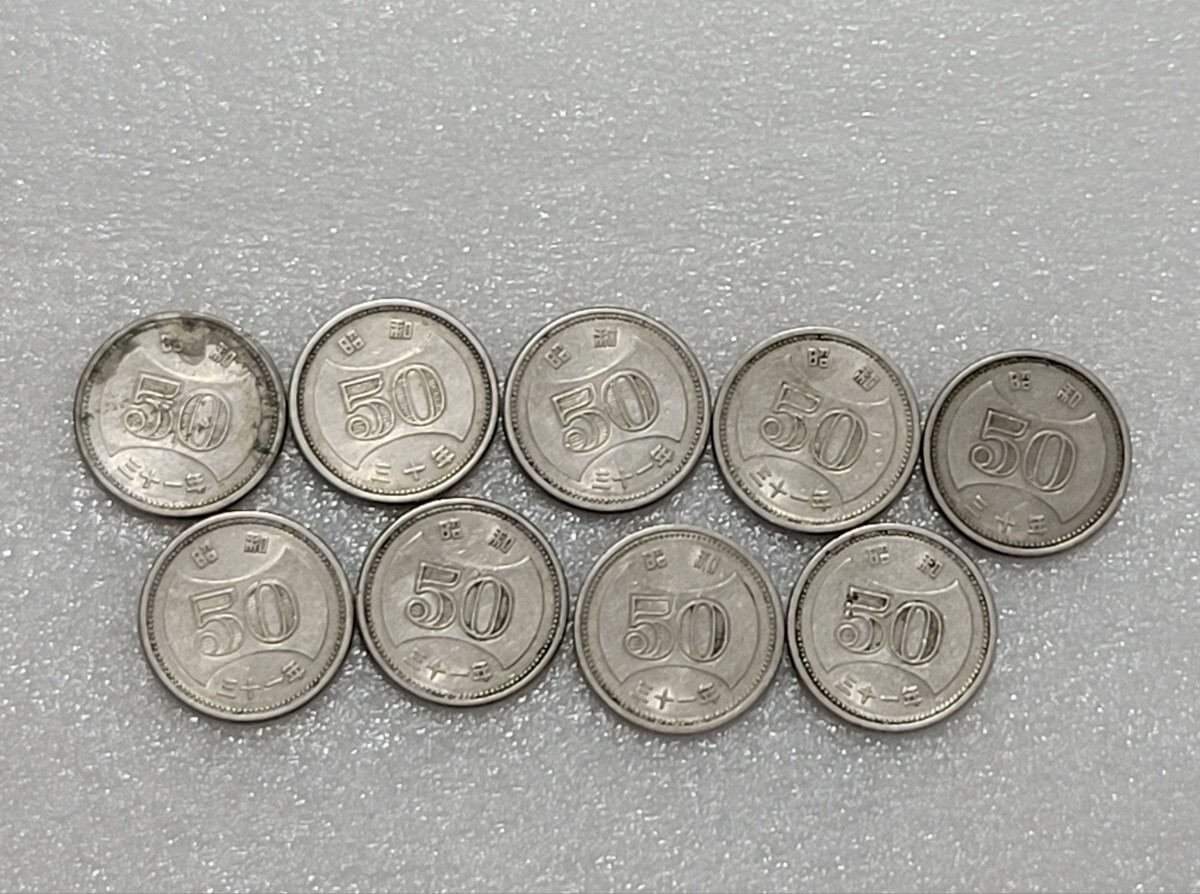 菊穴ナシ 旧50円硬貨 9枚セット ニッケル貨 昭和30 ~ 31年(1955 ~ 56年)日本 現行品  [浏览原始页面]