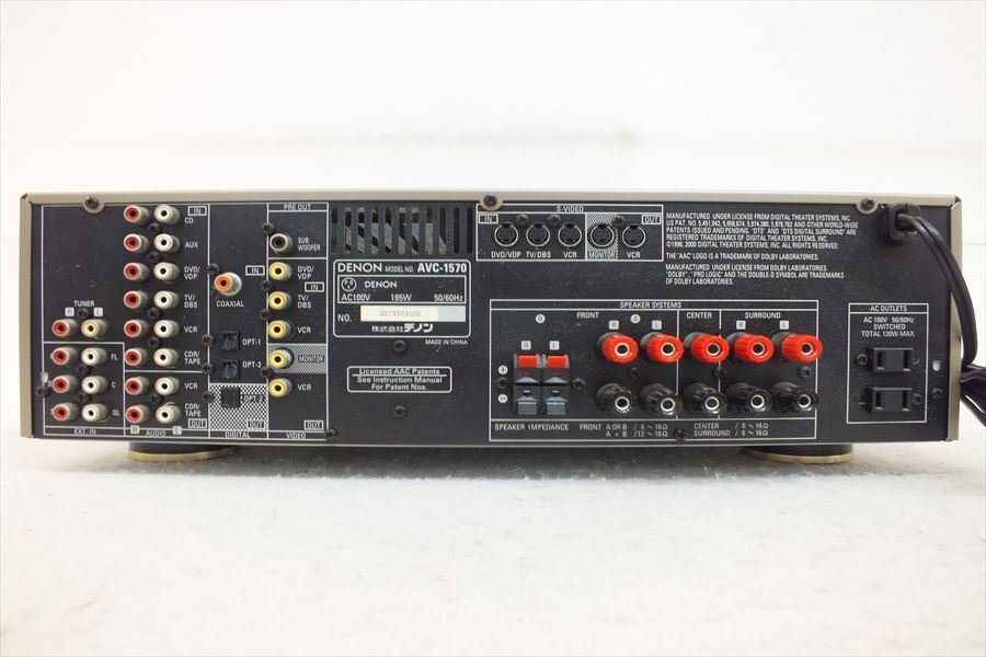 | ◆商品◆ メーカー---------DENON デノン 型式-------------AVC-1570 付属品-----------画像に写っているものがすべてになります。 ◆外装ランク◆ 【 C 】 ◆状態◆ 中古品の為キズや汚れなどの使用感はご容赦ください。 映像出力の接触が悪く、映像乱れます 音出しOK ボリュームダイヤルの反応がおかしく、ゆっくり回さないと音量がかわりません 現状品での出品となります。 調整やメンテナンスが必要となります。 【重要】配送送料と送料に送料が0円と表示される場合がございますが、出品画面に記載の送料が落札後にご精算されます。 | |||||||||||||||||