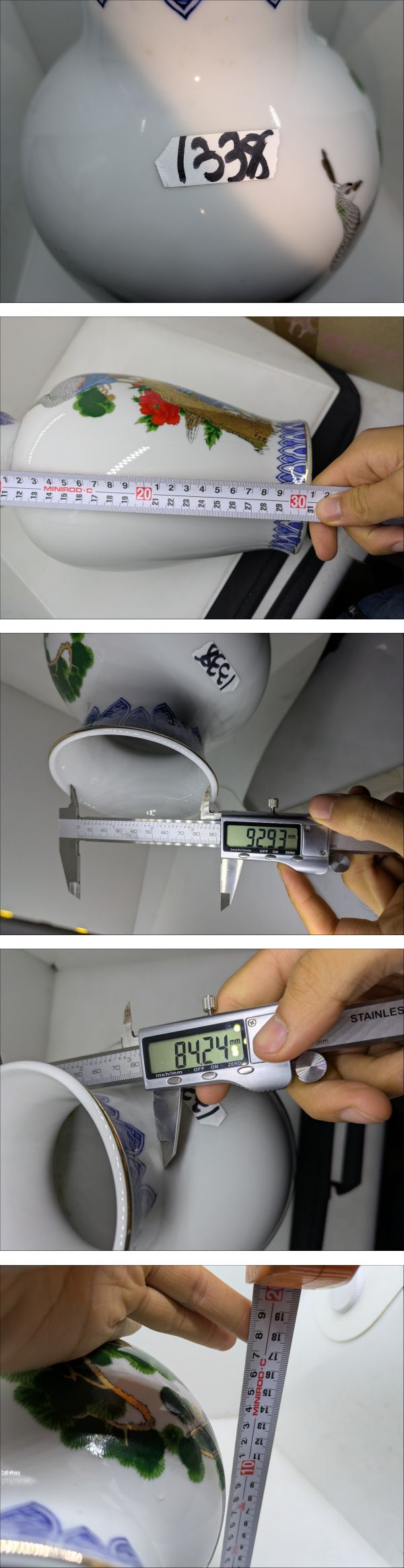 | No.1338●花瓶●孔雀絵双●骨董品●美術品●壺●花器●鳥●明陶銘●飾壺●花入●明陶●古美術品 | ||