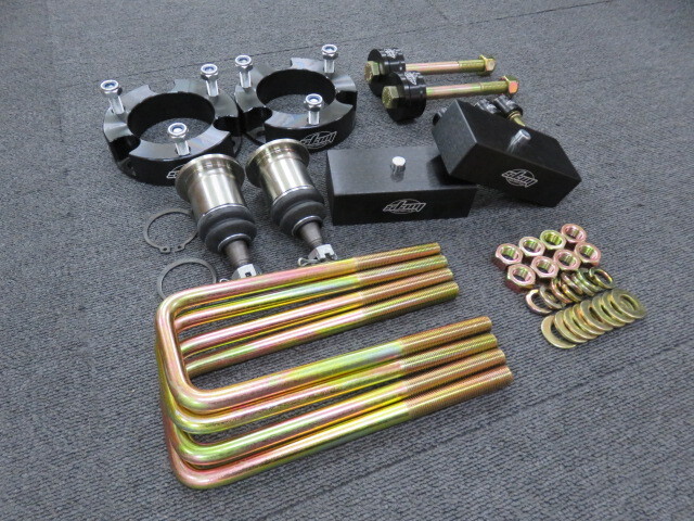 新品のフロントスチールアップスペーサー (3.0インチUP 7.6cm)&デフダウンスペーサー&リア 1.5インチブロック(3.8cm) +ロングボールジョイント付き セットです SLAMオリジナル アルミ製 (T6061 ホイールスペーサーなどに使う材質です) 取扱い説明書もあります もちろん取付アドバイスもいたしますよ この商品はフロントのアッパーアームに付くロングボールジョイント付きの価格になります 25mmロング 長くすることによりボールジョイントの角度修正にもなります(タイヤの角度・アーム) 当社の商品は全て税込価格です よろしくおねがいします 会社説明