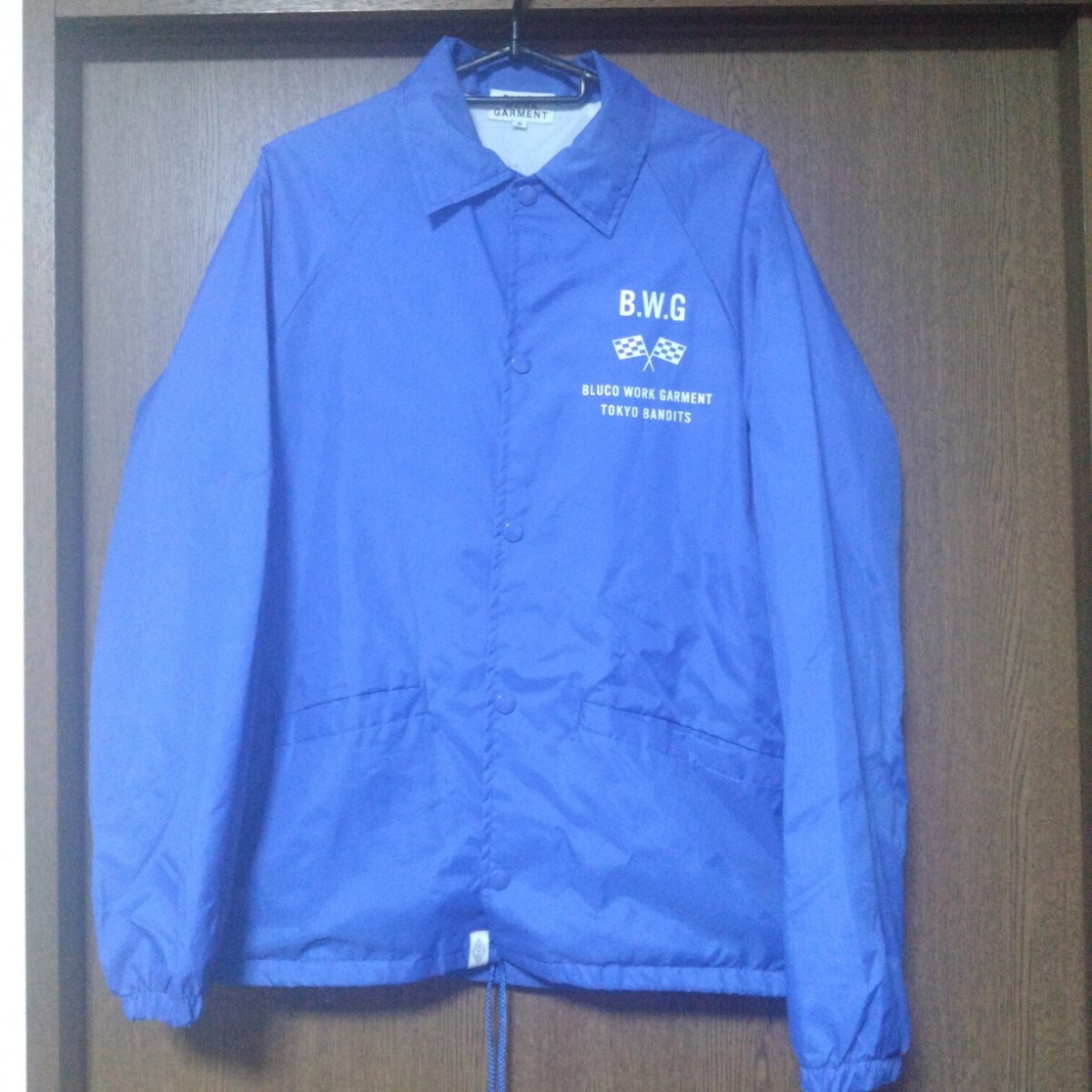 ブルコ BWGのコーチジャケットになります。色は青です。サイズはSサイズで、汚れや傷はありませんが中古品であることはご了承ください。 S:着丈68cm、身幅51cm、裄丈81cm