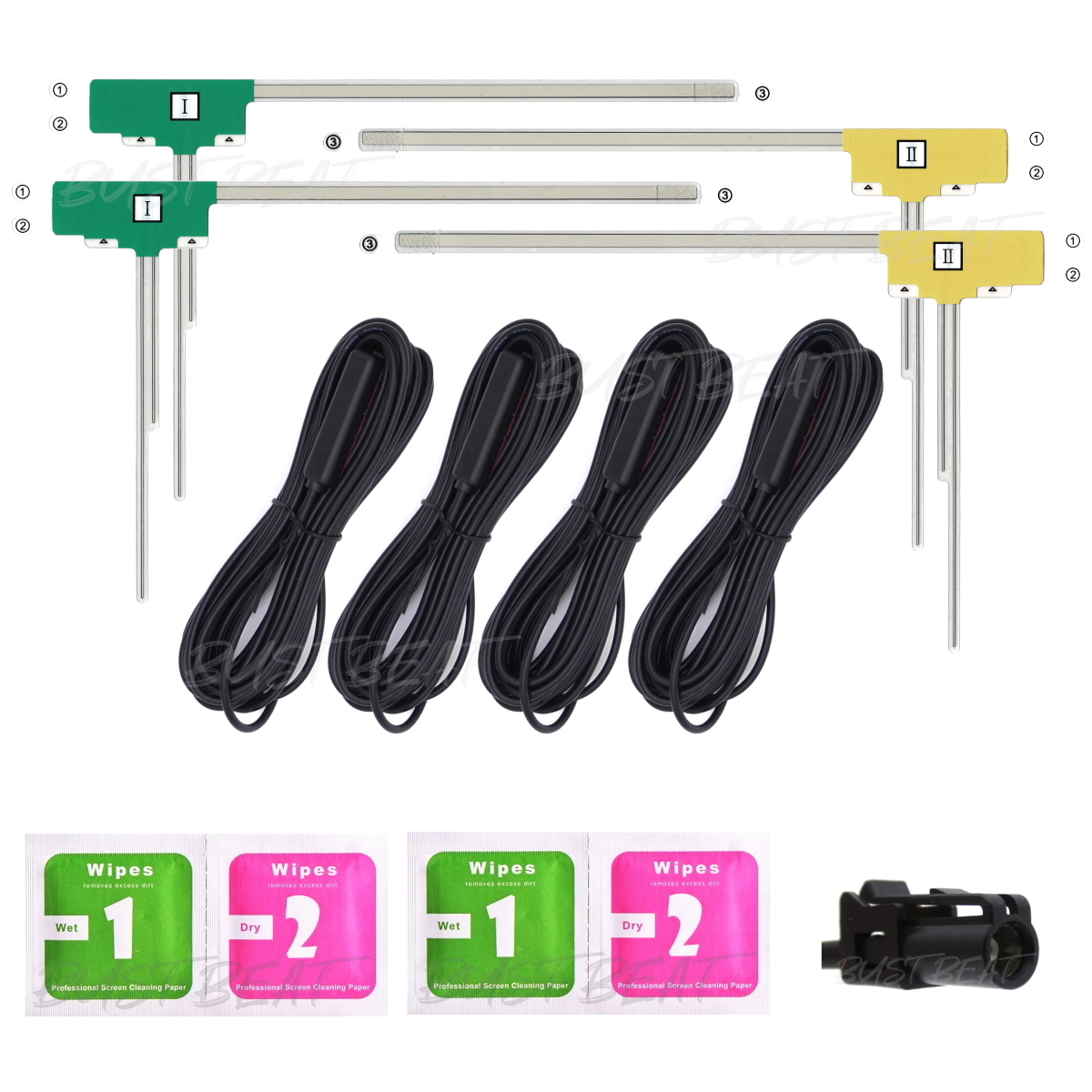 感度の良いフィルムアンテナにブースター内蔵のアンテナケーブルをセットにしました