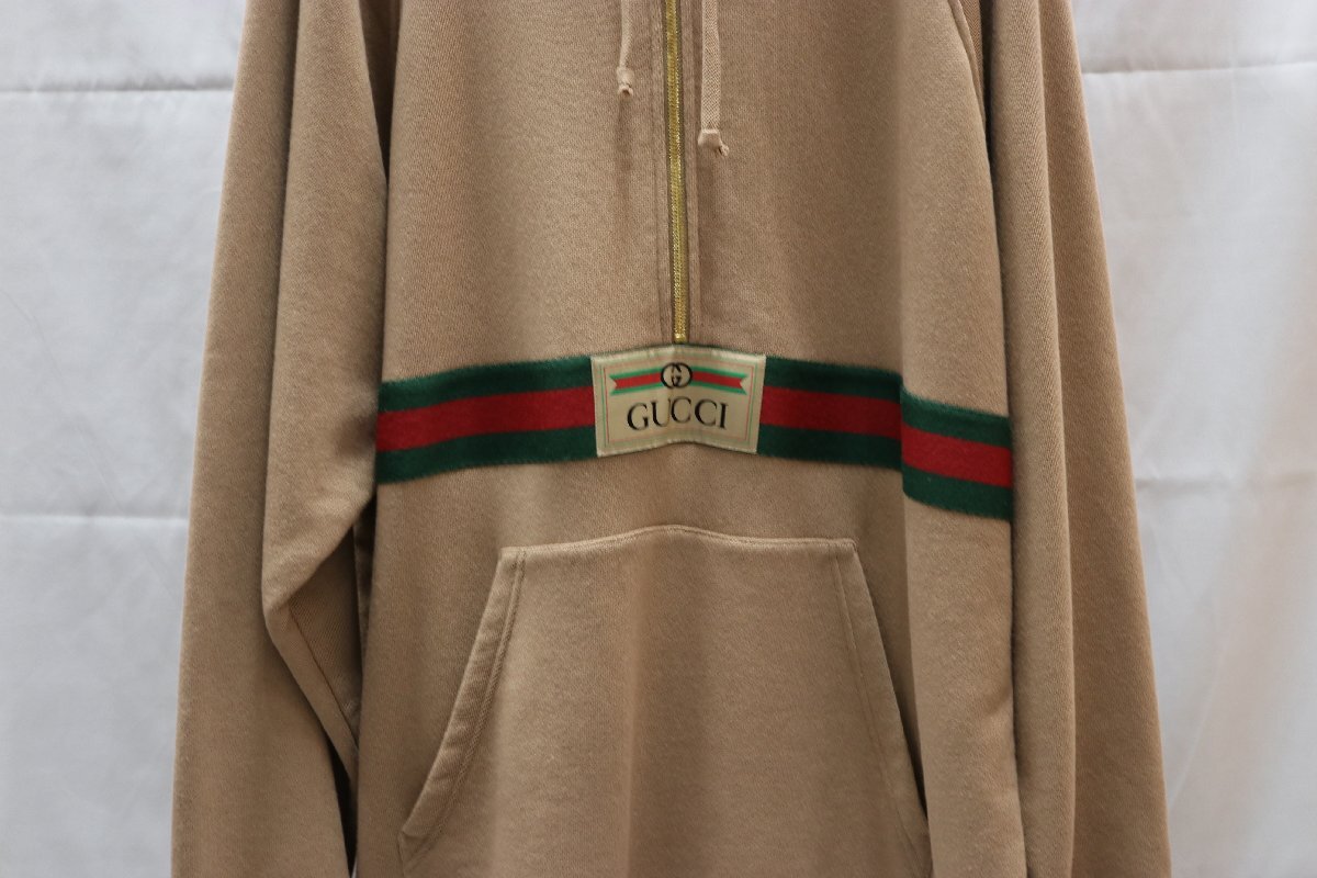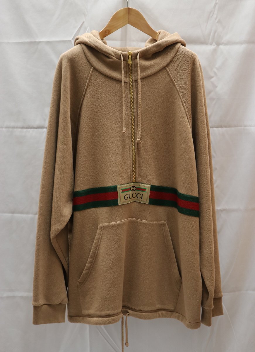 | GUCCI グッチ ウェブ&GUCCI シェリーライン スウェットシャツ ハーフジップパーカー ブラウン サイズL 644656 | ||