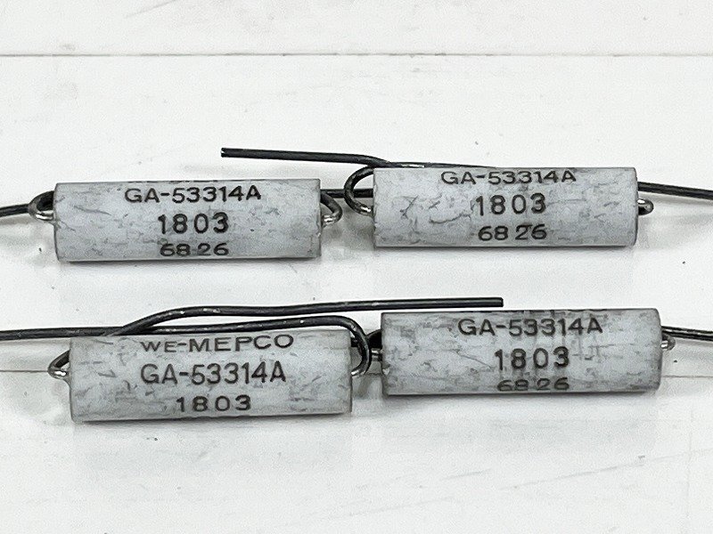 Western Electric GA53314A 180kΩ 4個です。 ガラススケルトンに金属抵抗を蒸着させた高度な技術。 WE社を代表する技術です。 誤差2%、容量1/2W。 キズや汚れがございます。 ・サイズ:6.3φ×D16.3(mm) |
