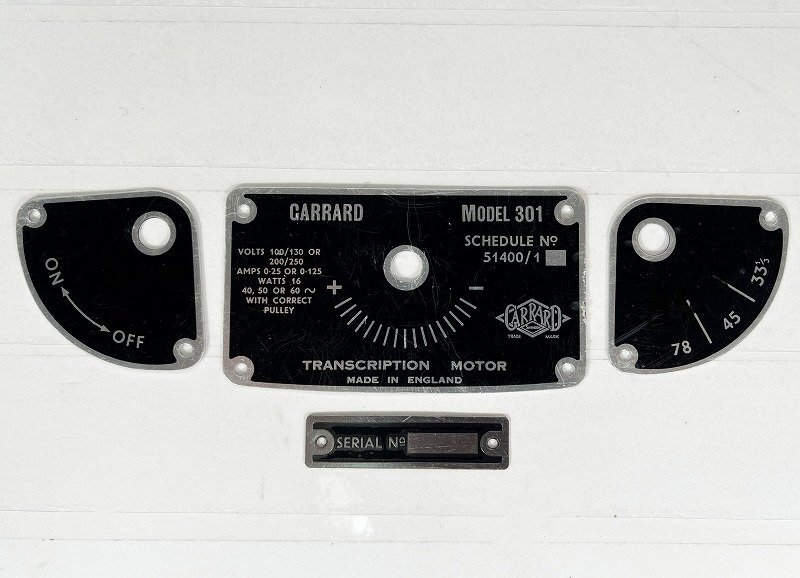 Garrard 301 プレート 4枚です。 こちらは複製品となります。 複数ございますので、同等品の発送となります。 |