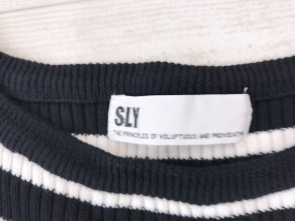 SLY スライ レディース ボーダー 綿 リブニットワンピース 五分袖 2 紺白 です。| 出价者 | 信用 | 价格 | 时间 |