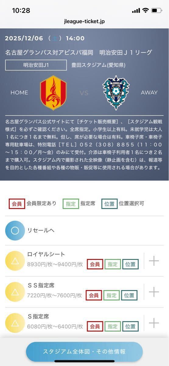 名古屋グランパス アビスパ福岡 豊田スタジアムチケット バックスタンド南1階S席 2枚| 出价者 | 信用 | 价格 | 时间 |