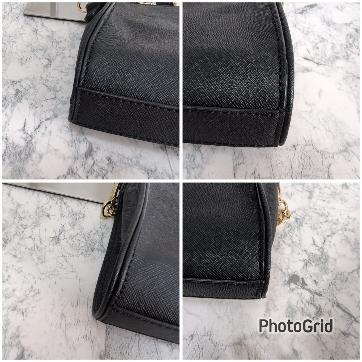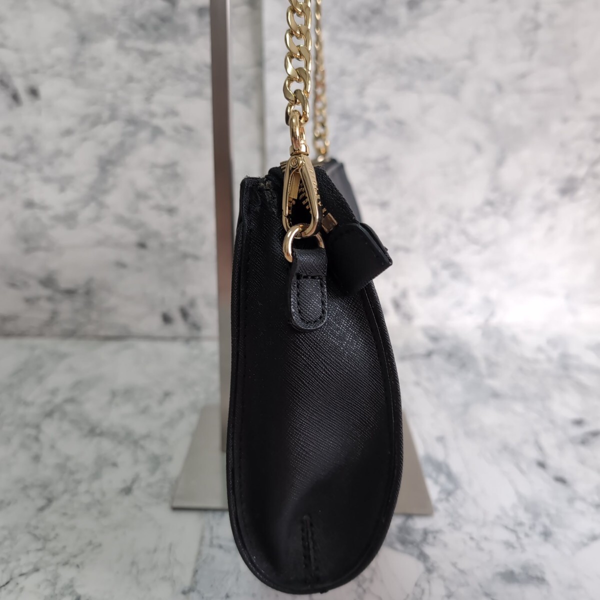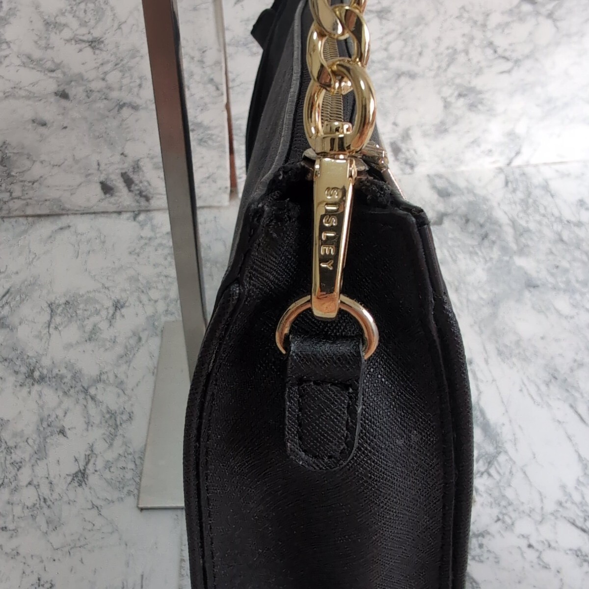 シンプルでスタイリッシュなブラックのショルダーバッグ、金属製のロゴとチェーンストラップ付き。| 出价者 | 信用 | 价格 | 时间 |