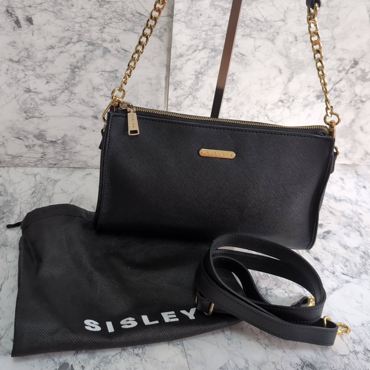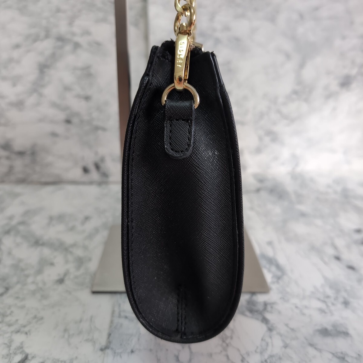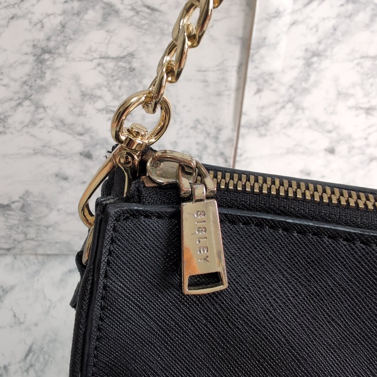 シンプルでスタイリッシュなブラックのショルダーバッグ、金属製のロゴとチェーンストラップ付き。| 出价者 | 信用 | 价格 | 时间 |
