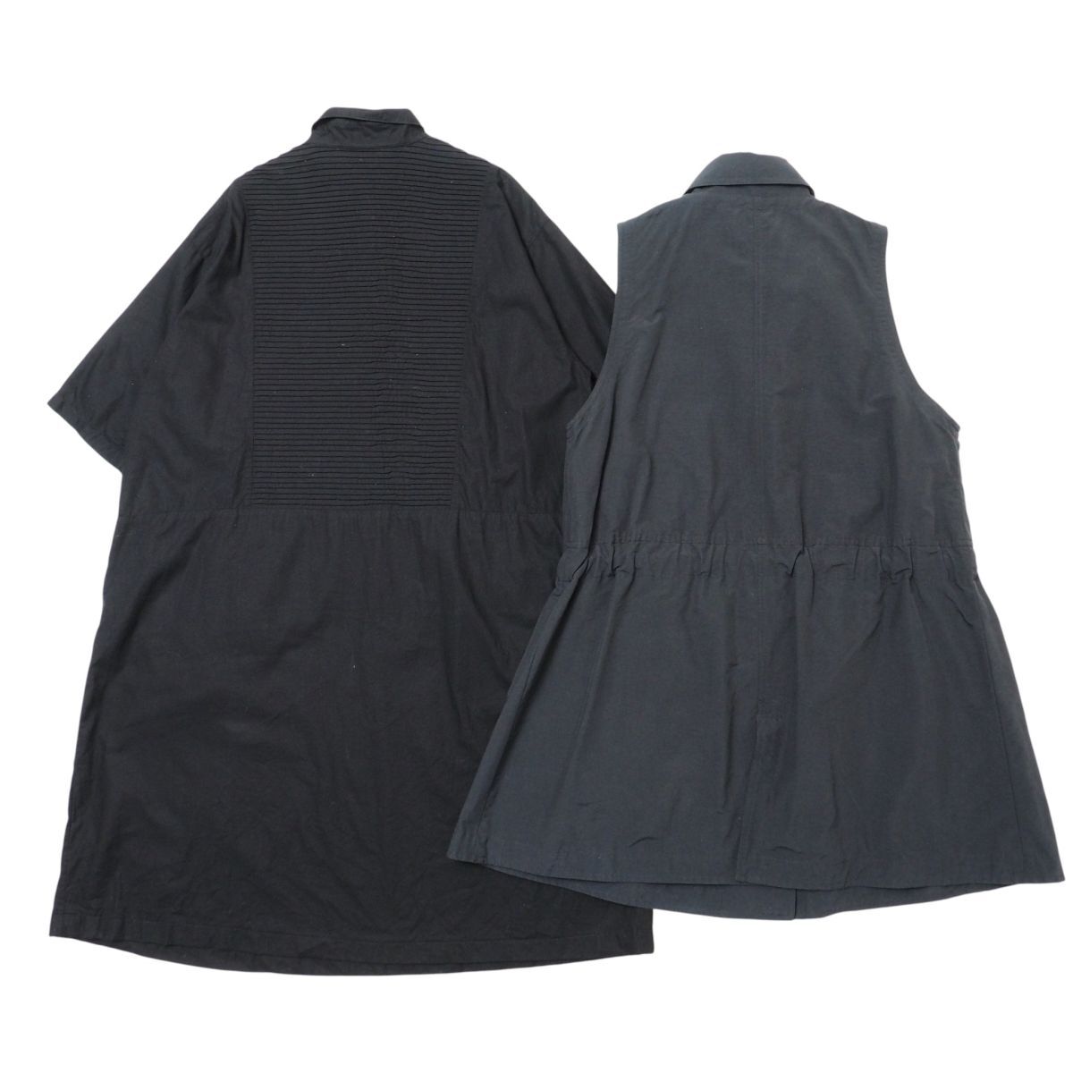 | TJ5585◎ヤッコマリカルド 2点セット 5分袖 オーバーサイズ ピンタック ワンピース + ロングベスト ジレ ドローコードあり M~L相当 黒 | |||