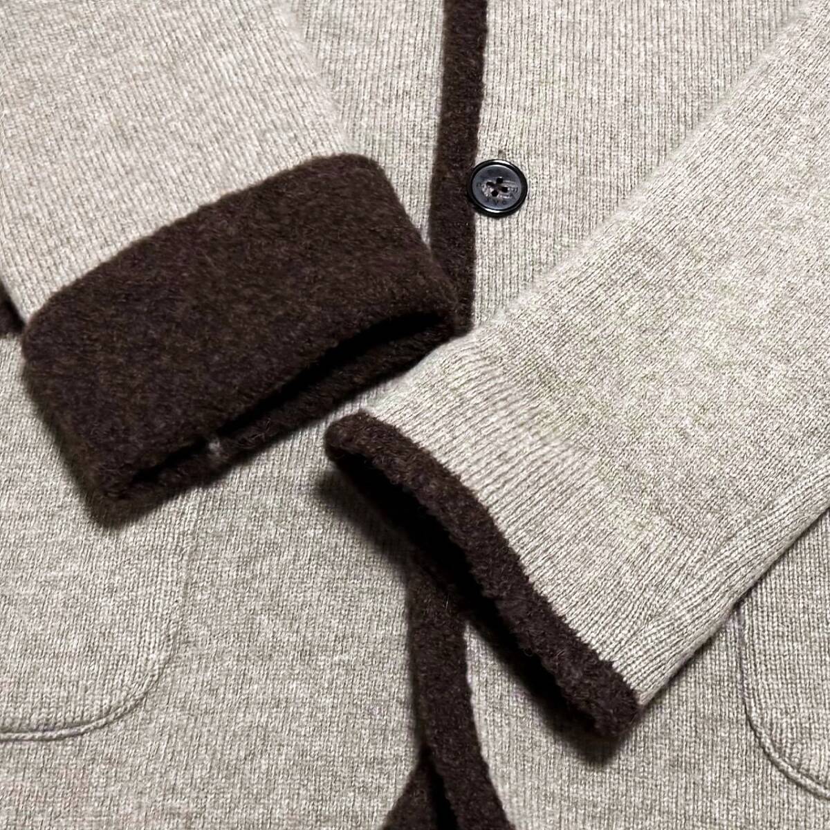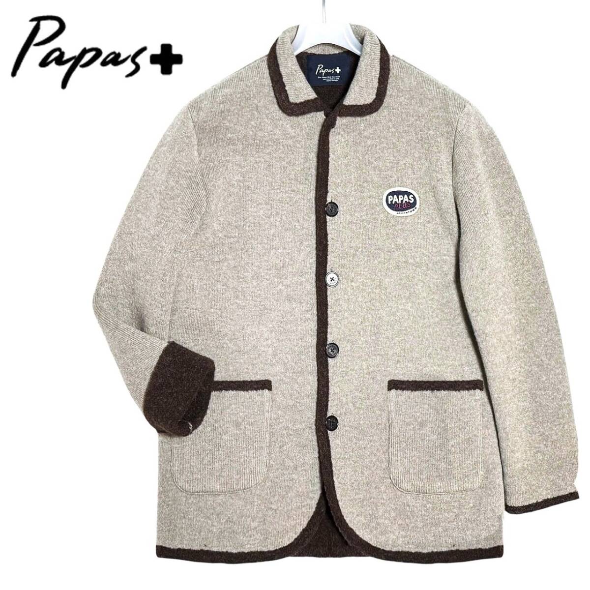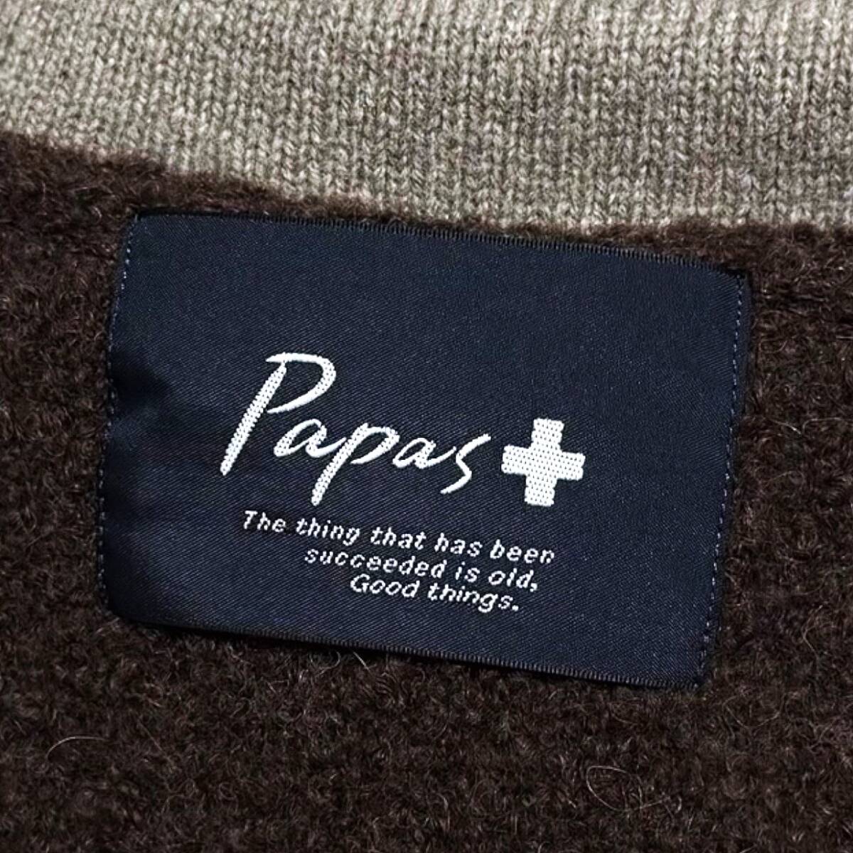 | 商品説明 | 【商品】 極美品 定価8万 日本製 Papas+ パパス プラス 極上 アルパカ x カシミヤ ブレンドウール パイル裏地 Wフェイス ニットジャケット M/L相当 【商品説明】 Papas+(パパスプラス)のメランジウール ショールカラー ケーブル編み ニット カーディガンになります。 (株)パパスの内タグが付属する国内正規品になります。 デザイナー荒牧太郎の生き方や個性が表現された何時の時代も変わる事無く私達に素敵なアパレルを提供してくれる唯一無二のブランド『パパス』。 「Papas(パパス)」の新シリーズ『Papas+(パパスプラス)』はスタイリッシュな大人の為のカジュアルラインになります。 表地はふんわりと柔らかい極上カシミヤブレンドウールのニット、裏地にはふかふかでとろみのある柔らかな肌触り、温かさと保湿力・耐久性をもつアルパカ素材のパイル地で贅沢に仕立てられたラグジュアリーな逸品。 色使いもオシャレで細かいディテールに「コダワリ」と「遊び心」を存分に詰め込んだパパスらしい大人カジュアルな雰囲気ある仕上がりです。 パパスらしいゆったりとしつつも無駄を省いた美しいシルエットで軽く暖かく、着心地が良いアイテムです。 ニットボディの左胸には一目でパパスとわかるロゴワッペンがあしらわれた、洗練された雰囲気を漂わせたパパスらしいお洒落且つこなれたデザインに、メイドインジャパンの確かな縫製、上質なマテリアルの表情がプラスされることにより、圧倒的な存在感と風格あるラグジュアリー感を放つアイテムに昇華されています。 ミドル丈のシンプルながらも高級感のある完成されたデザインはジャケット感覚でオフのコーディネイトはもちろん、スーツやジャケットの上に合わせたスタイリングもおすすめです。 フロントは5つボタン開閉、フロントにポケットが2つ、袖口はお好きな丈に折り返して調整が可能。 左胸にはブランドロゴ入りのワッペン、ボタンにはブランドロゴの刻印が施されており、ブランドをしっかりと主張した特徴的なデザインで、存在感のある着こなしを楽しめます。 素材・デザイン・シルエットの全てにこだわり抜かれた、さすがパパス!と唸らされるクオリティーの高い仕上がりの逸品なっています。 シルエットやディテール・パーツなど細部にまでこだわりが感じられ、一着でワンランク上のラグジュアリーな大人のコーディネートが完成致します。 防寒・保温性にも優れ、ビジネスシーンにも着用いただける、使い勝手の良いニットジャケットは幅広いシーズンに活躍するアイテム。 カジュアルからビジネス・フォーマルシーンでも活躍し、普段使いから贅沢な通勤用アウターとしてもオススメです。 上質なデザインで末永く愛用していただける逸品。 パパスならではの拘りの作りと、高級感のある仕上がりの一着。 定価では手の出難い非常に高価なアイテムになりますので、本物志向の方は是非この機会にご検討下さい! 【サイズ】 表記:M/実寸L相当 肩幅:48㎝(肩縫い目間・直線) 身幅:57㎝(脇下・直線) 袖丈:64㎝(肩先~袖先) 着丈:74㎝(後襟下~裾先) (※多少の誤差はお許しください。) 【素材】 表地:毛56% アルパカ33% ナイロン9% カシミヤ2% 製造国:日本製 【カラー】 ブラウン×グレージュ系 【コンディション】 使用感も殆ど無く、まだまだご使用頂ける非常に状態の良い商品です。 これからも十分に着用頂けます。 ※画像を参考にして下さい。 ※状態の確認は慎重に行っていますが、商品によっては全てのダメージを抜粋して記載する事が難しいため、記載された情報(破損や汚損・他目立つダメージ等)以外に、細部の破損や汚損、欠品等の見落としがある場合がございます。 予めご了承くださいませ。 |