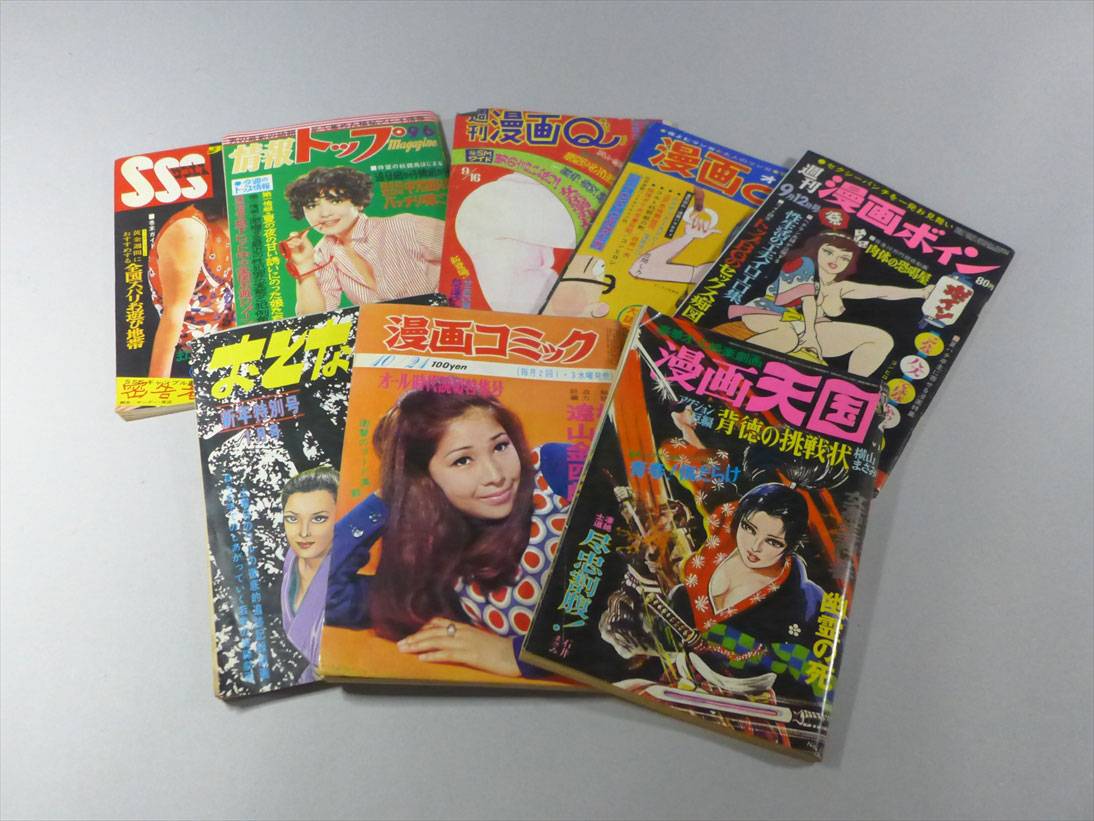 昭和40年代漫画雑誌『漫画Q 漫画OK おとな漫画 漫画コミック 漫画天国 情報トップ 漫画ボイン SSSサンエス』8冊まとめて です。とても古い本なので経年汚れや劣化等ありますが、時代を考えるとおおむね状態良好と思います。状態など画像参照でお願いします。※他にも貴重なSM関係の本や雑誌、写真集など出品しております。是非ご覧ください★★★★★★★★★★★★★★★★★★★★★★★★★最近、悪質な入札者が多く非常に迷惑をしております。新規IDや「非常に悪い・悪い」の評価の多い方の入札はお断りさせて頂きます。 仮に入札があった場合でも、発見次第入札を削除させて頂く場合がございます。