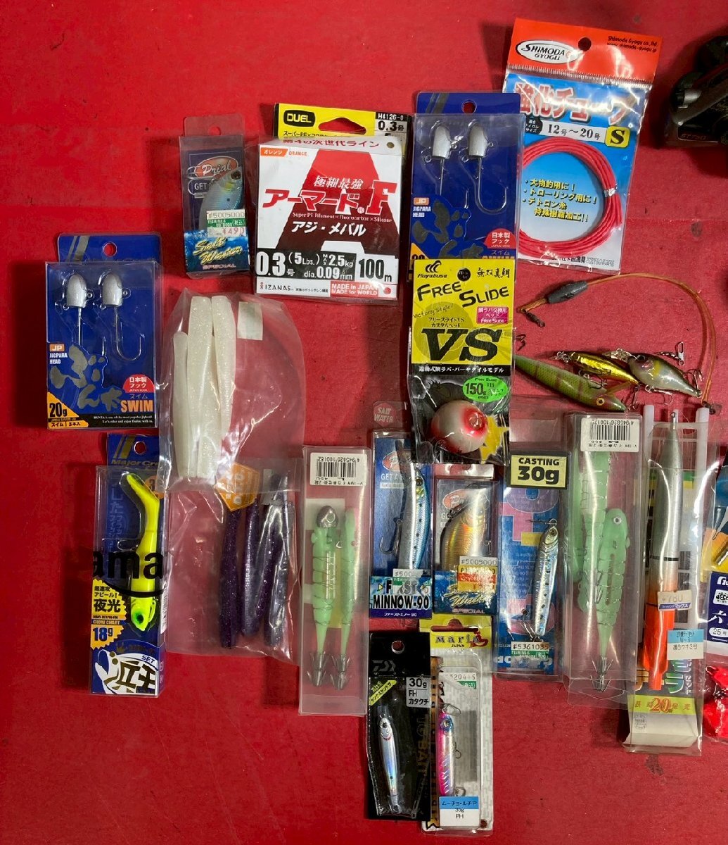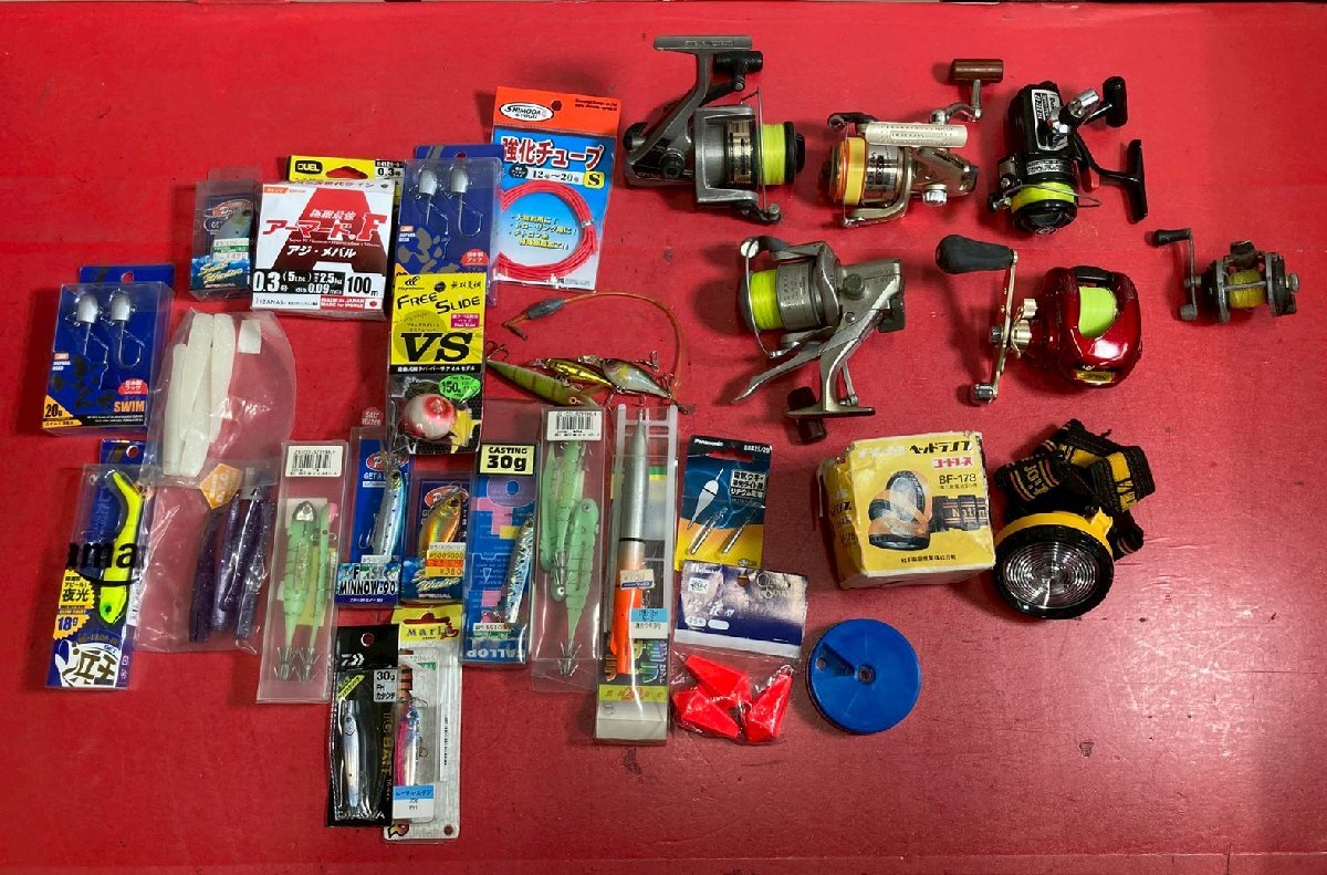 | 商品名 | 釣り具 ルアー 釣り糸 スピニングリール ベイトリール ヘッドランプ 等 30点 約3㎏ まとめ売り |