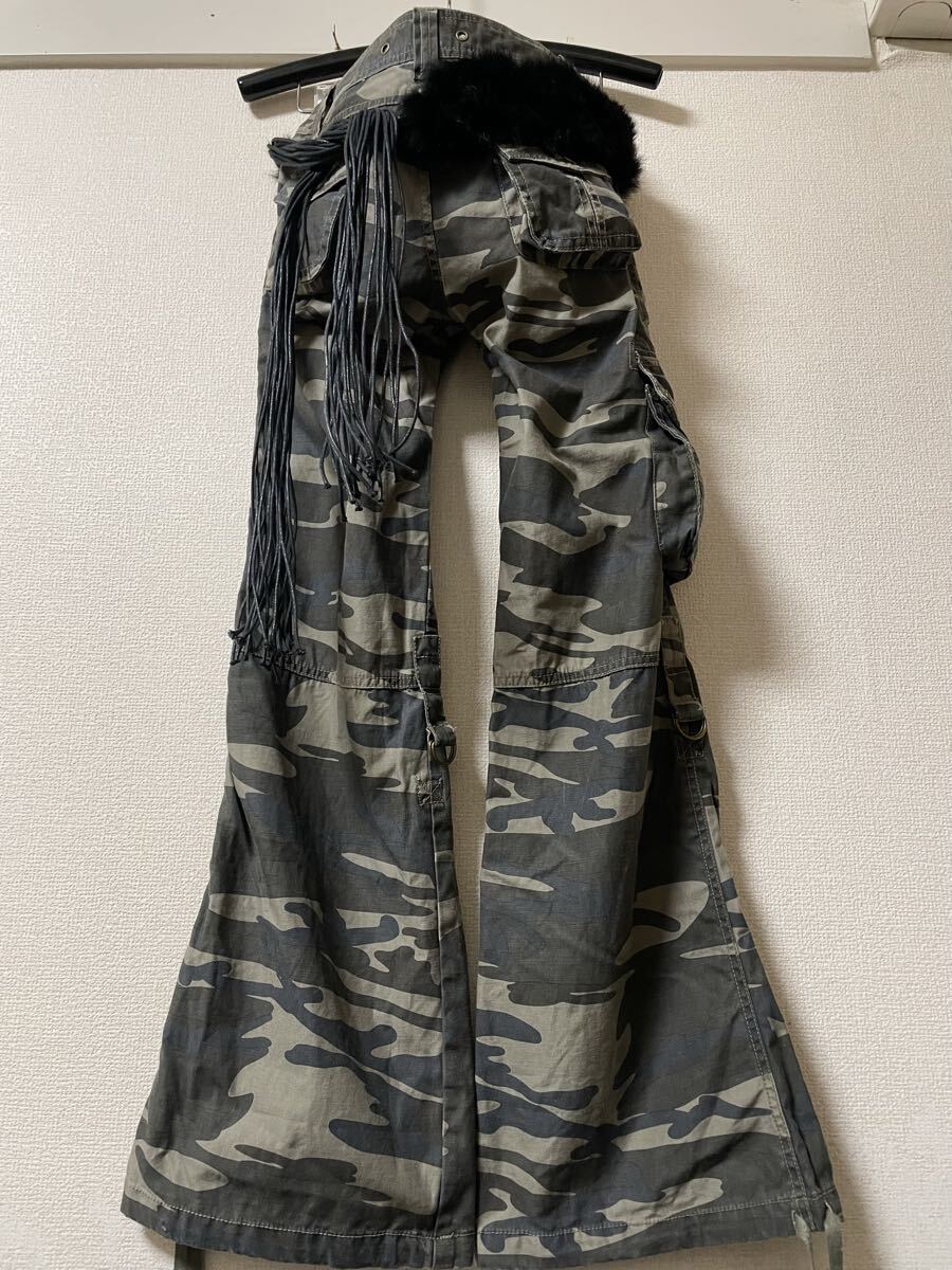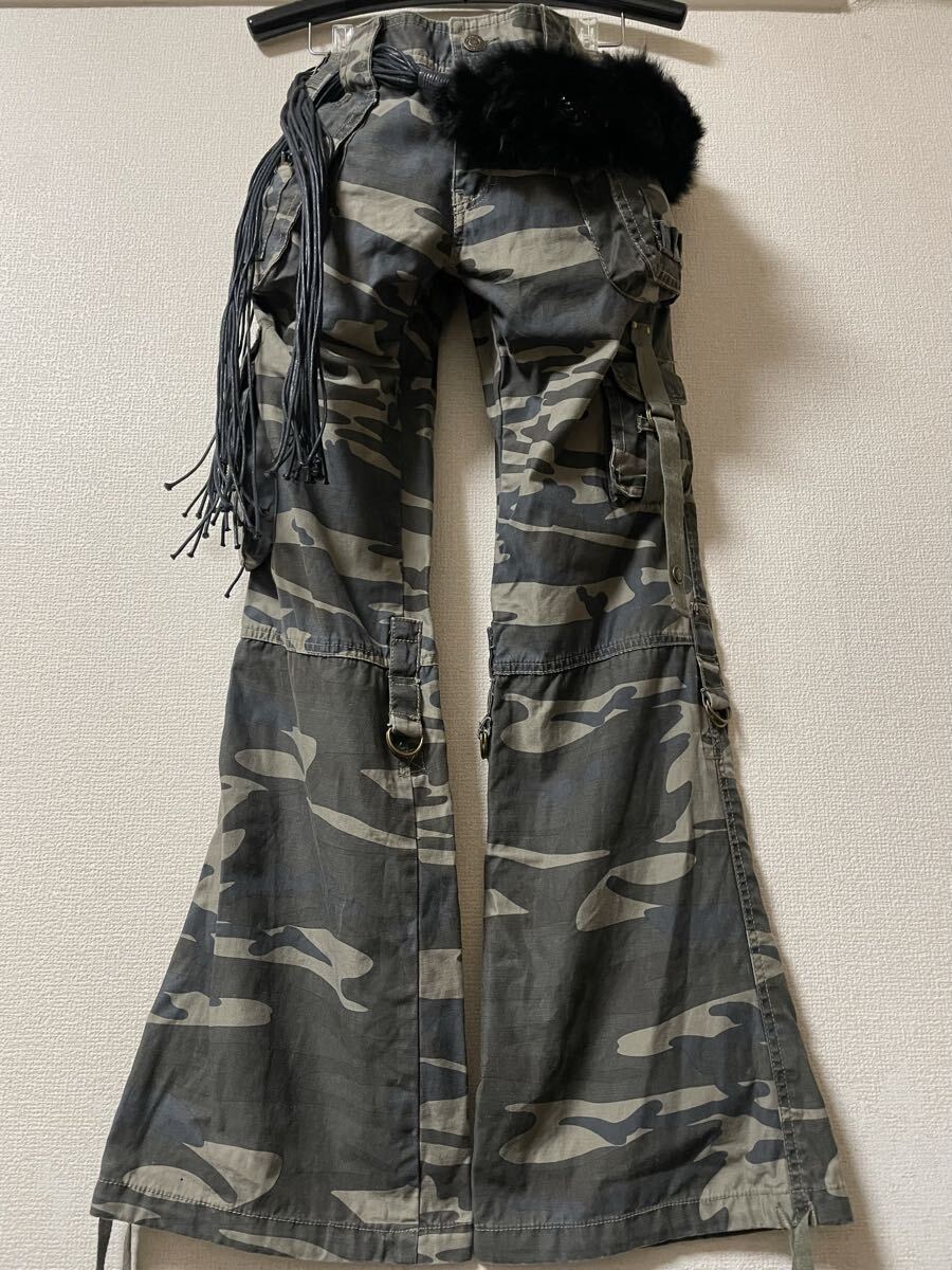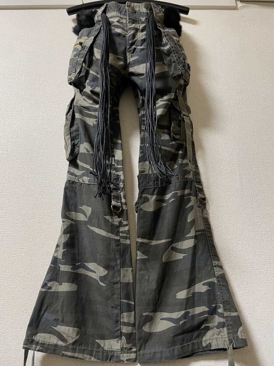 00s archive japanese label rabbit fur belt military gimmick Parachute Cargo Flare pants