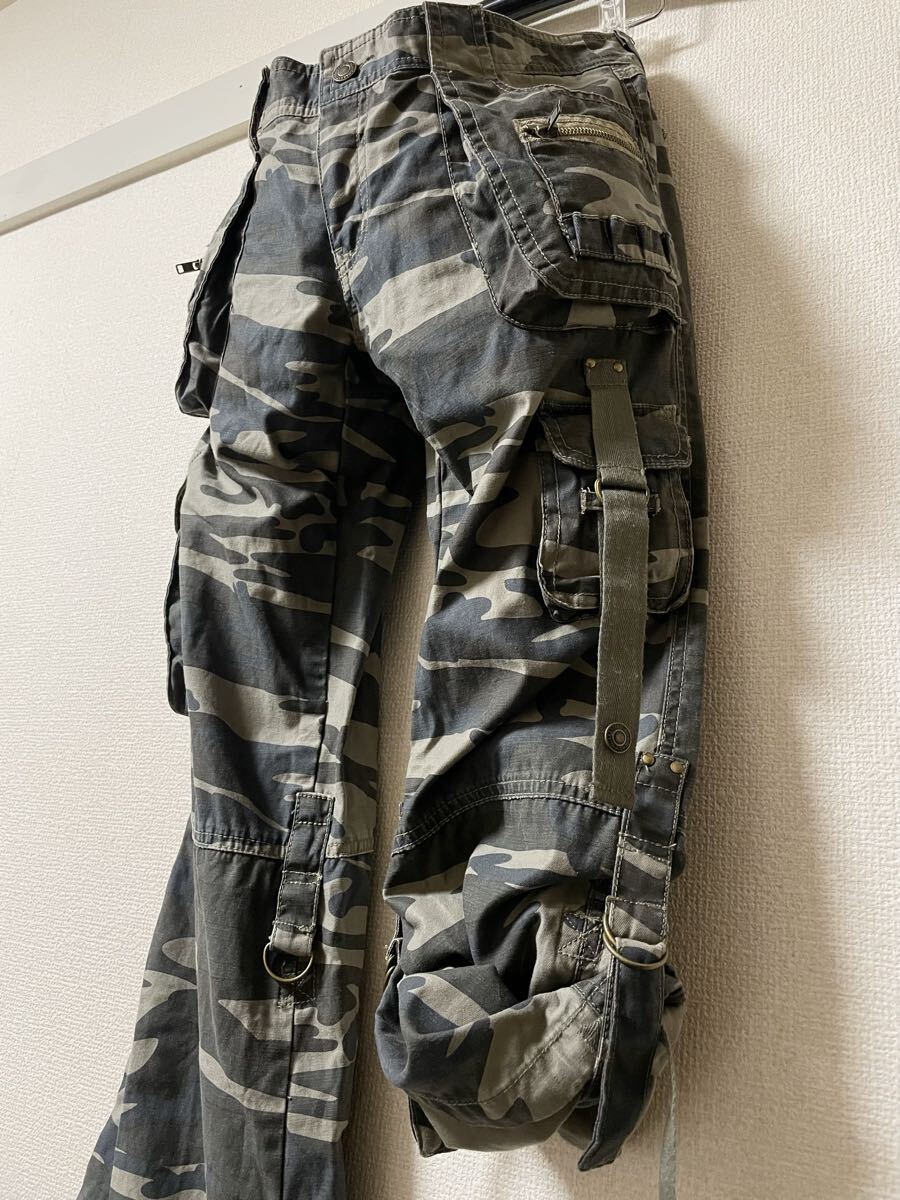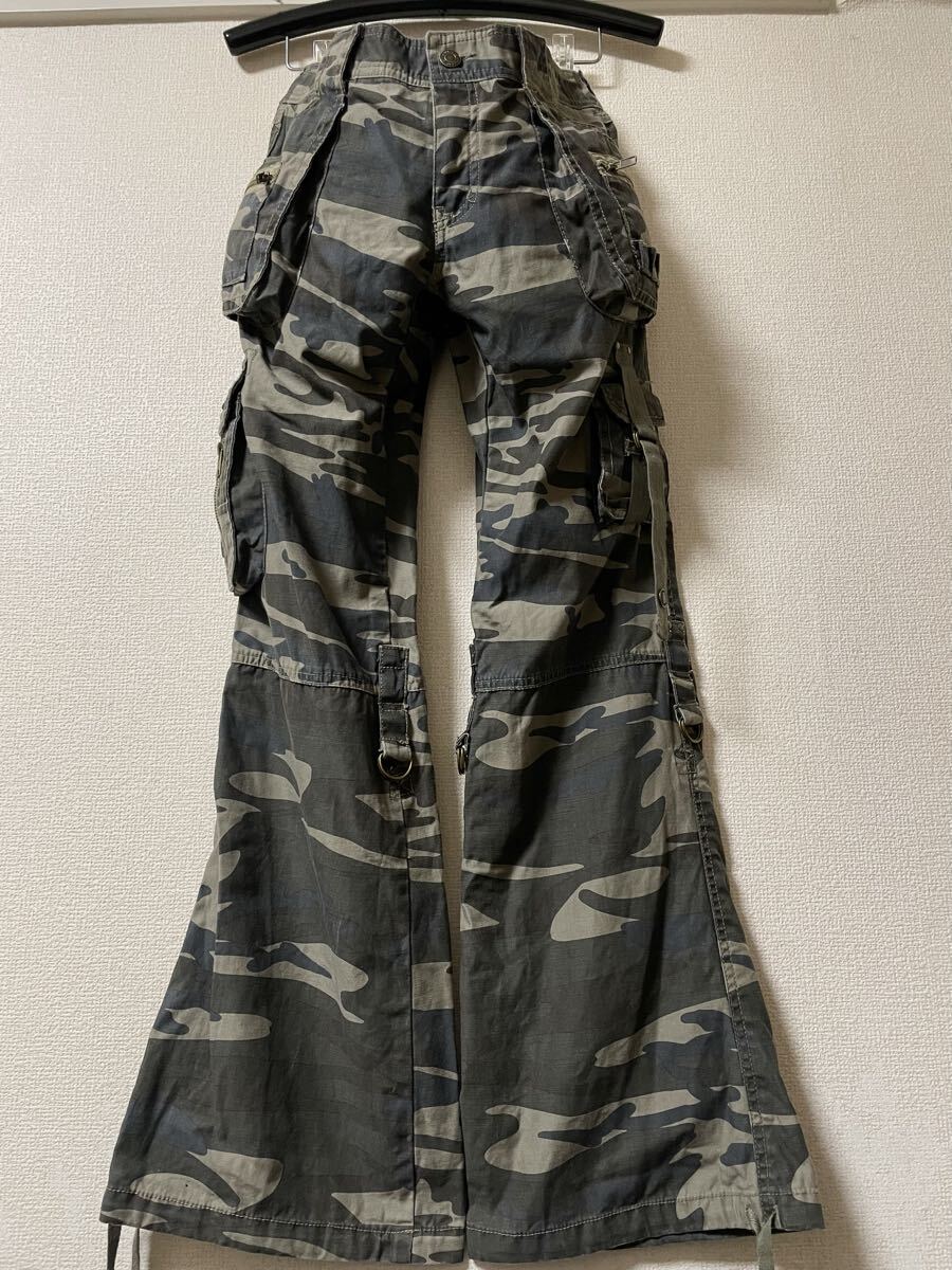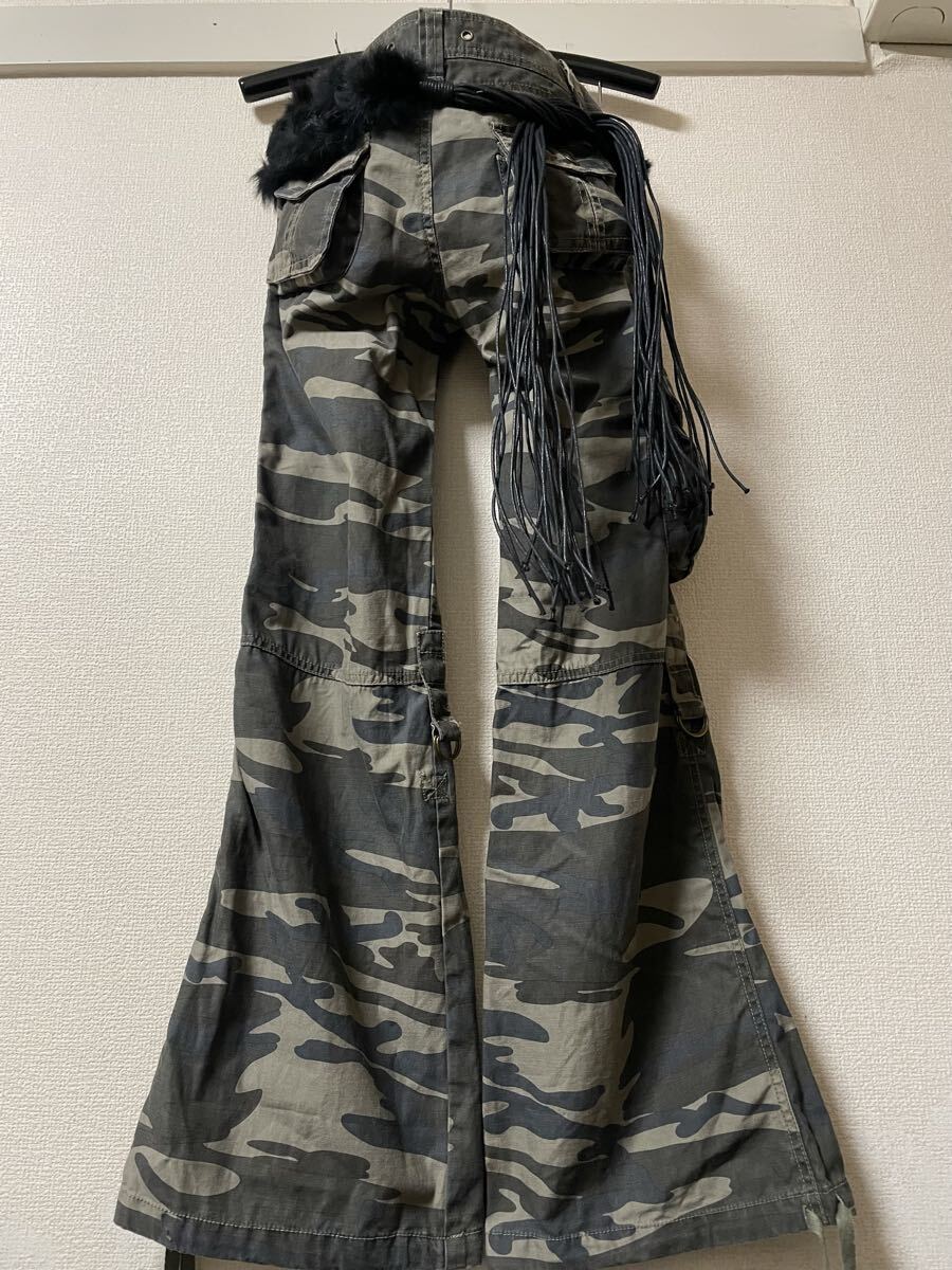 00s archive japanese label rabbit fur belt military gimmick Parachute Cargo Flare pants