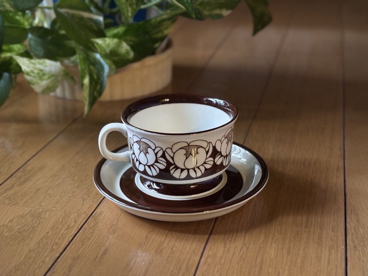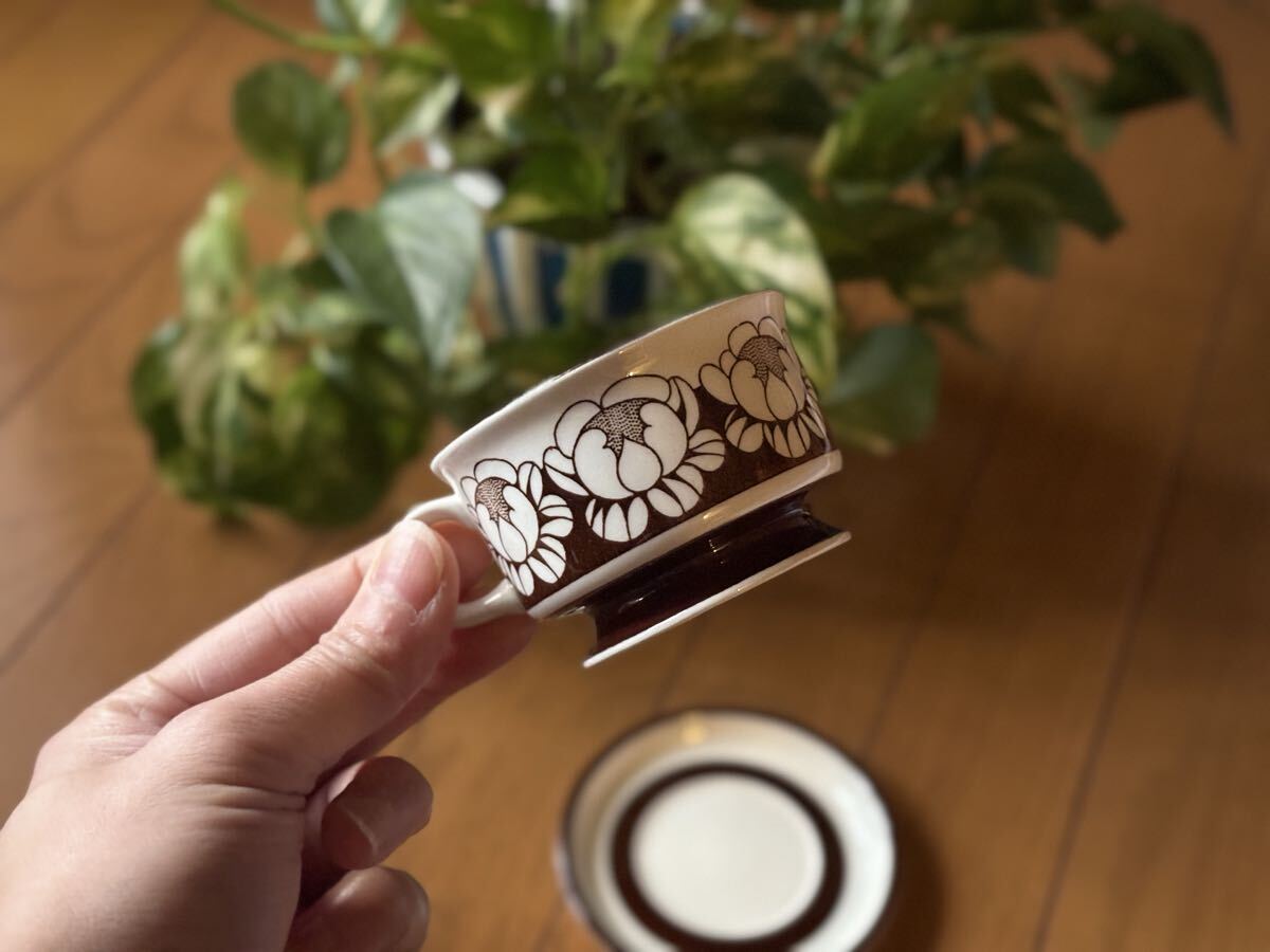 * 商品説明 * サイズ (カップ) 口径 7.4cm × 高さ 4.8cm, (ソーサー) 直径 12.9cm 製造時期 1975-1977年 コンディション ★★★★☆ アラビアより人気デザイナー、エステリ・トムラの手がけたKATRILLIシリーズより一番小さなデミタスカップとソーサーのセットになります。優しいチョコレートブラウンで描かれた蓮のお花が並べられたデザインです。女性らしいフォルムも素敵です。 コンディションとしましては、気になるようなスクラッチもほとんどなく、とても綺麗な艶が残っています。全体的にとても良いヴィンテージコンディションだと思います。 * 発送方法 * ゆうパックで発送いたします。 * 支払方法 * 銀行振込・!かんたん決済 * コメント * あくまで中古品(ヴィンテージ)、個人管理品であることをご理解いただいた上でご入札ください。 ご不明な点・ご質問などあれば、お気軽にメッセージにていただければと思います。 ノークレーム・ノーリターンでお願いいたします。 |