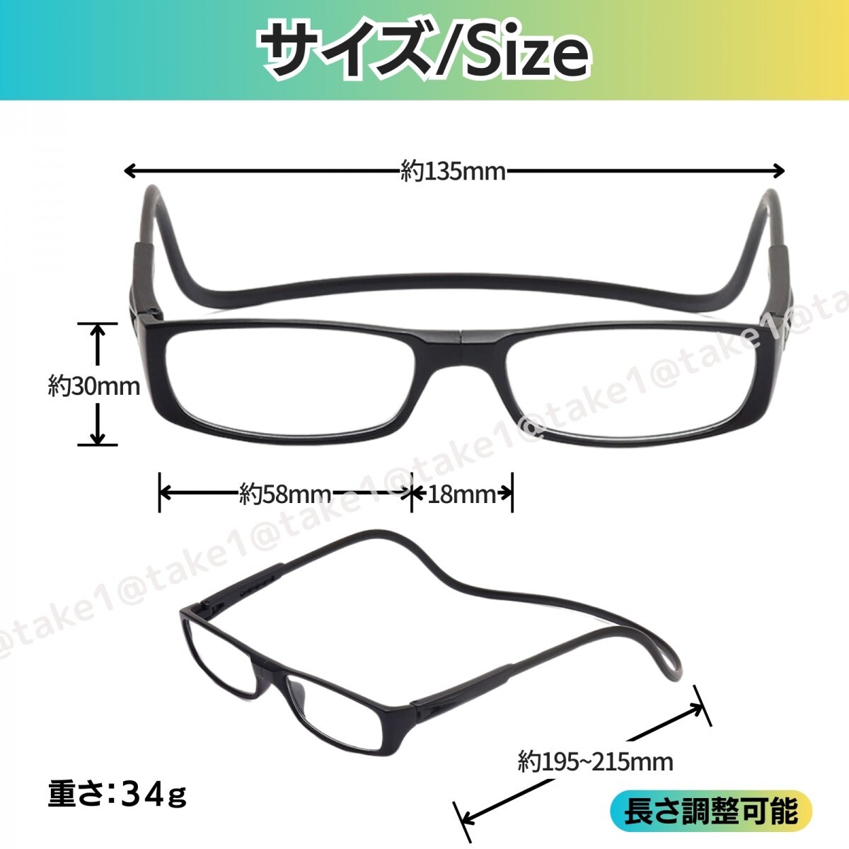 数あるオークションの中から、ご覧いただきまして本当にありがとうございます。 *・゜゜・*:.。..。.:*・'(*^^*)'・*:.。. .。.:*・゜゜・* ☆フロント部分中央の中央部にあるマグネットを取り外すことで、そのまま首にかけることが可能です♪ ☆置き忘れがなくすぐにかけ外しが可能です。♪ ☆とても軽量で首への負担もありません。♪ ☆フレームの横部分は、お顔に合わせた長さ調整が20mmまで伸縮可能♪ ☆フレームカラーは黒/ブラック♪ 【度数】 1.5度 サイズをよくお確かめのうえお買い求め下さいませ。 ※限定品につき、予告なしに製造販売(生産)が中止になることがございます。