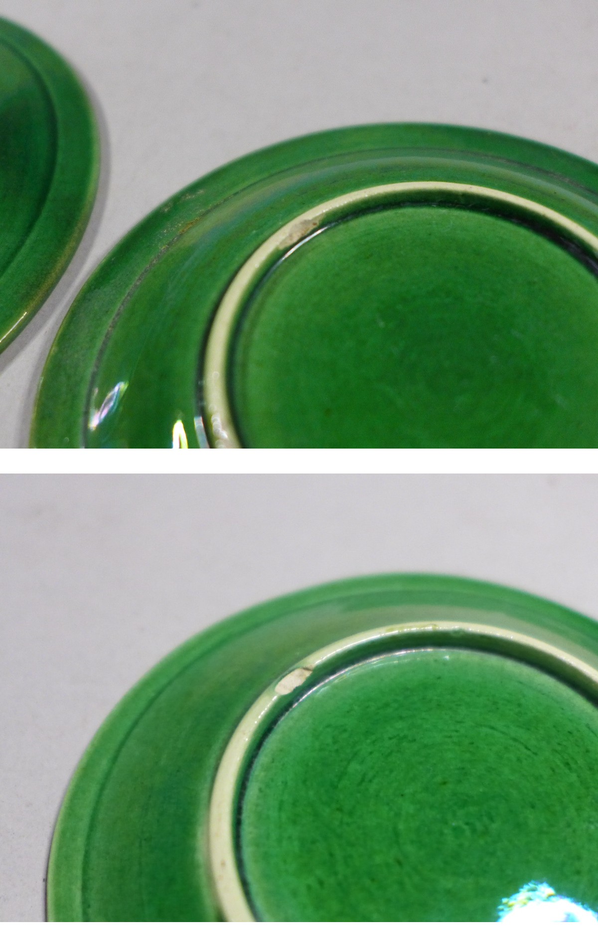 直径:約10・2cm。淡路 珉平焼【緑釉三彩花文小皿12客】です。2枚だけ高台に小さな欠けあり、他は疵も無く状態良好です。他にも珉平焼を出品しております。是非ご覧ください。状態は画像参照でお願いします。★★★★★★★★★★★★★★★★★★★★★★★★★最近、悪質な入札者が多く非常に迷惑をしております。新規IDや「非常に悪い・悪い」の評価の多い方の入札はお断りさせて頂きます。 仮に入札があった場合でも、発見次第入札を削除させて頂く場合がございます。