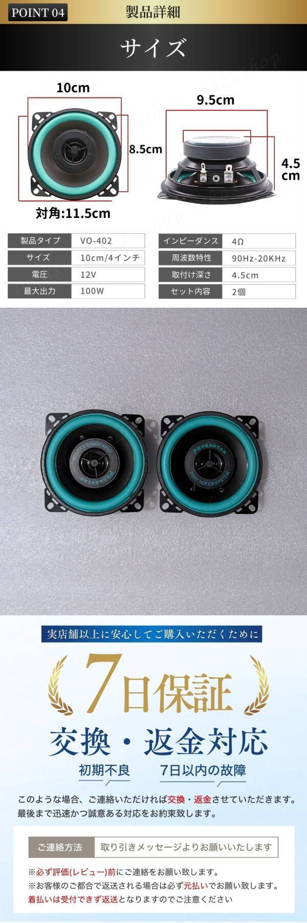 カースピーカー 2way コアキシャル 10cm 4インチ 2個セット
