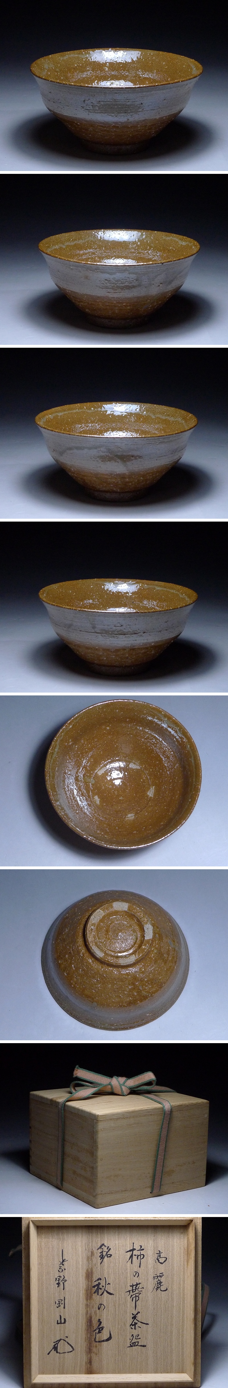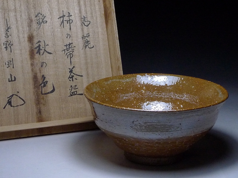 紫野剛山(大徳寺 松永剛山)書付・高麗 柿の蔕茶碗・銘 秋の色・共箱付き・陶磁器 茶道具 抹茶碗 食器 伝統工芸 古美術