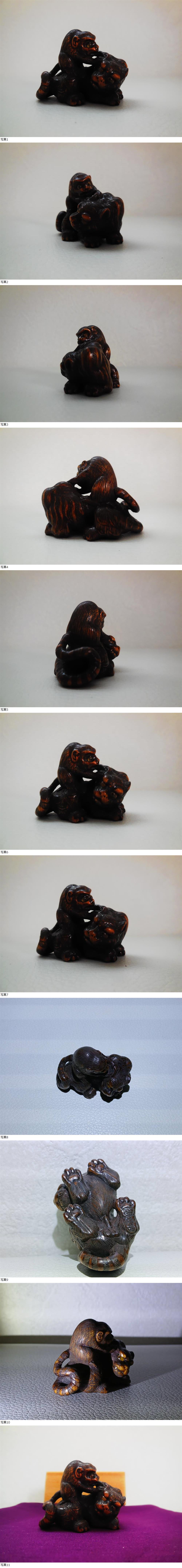 | ★眼光鋭く猿を睨む虎の表情・虎に睨まれ危機迫る猿の驚く一瞬の表情にまで細密彫の高度な技術に感動致します。 写真参考 | ||