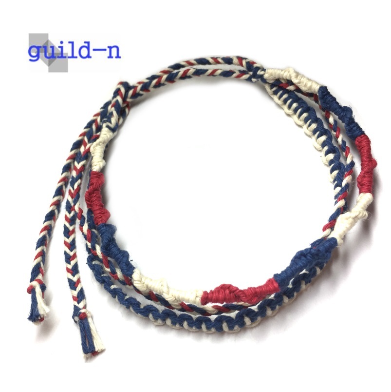 【guild-n ★ トリコロール ネイビー 3連 ヘンプ 麻 アンクレット ブレスレット 腕 足用 ミサンガ メンズ レディース 両用 サイズオーダー可】