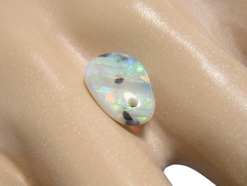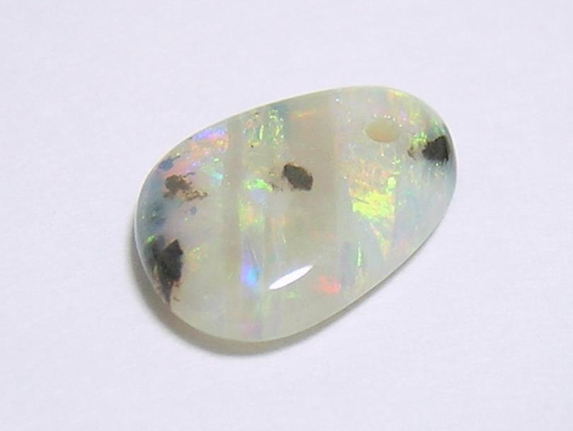 オーストラリア産の天然オパールです。 1mm前後の小さな穴が開けられていて、両面の穴の淵が少しカケてしまっています。 【石名】天然オパール 【産地】オーストラリア産 【処理】非加熱 【カット】フリーシェイプ 【重さ】1.50ct 【サイズ】 11.6×8.2×2.5mm 【状態】新品 |