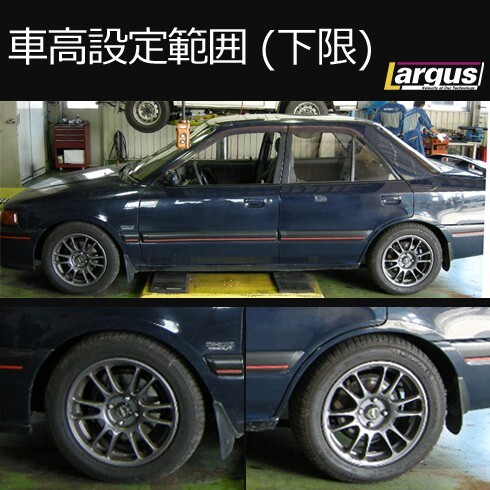 | Largus車高調のスタンダードモデルとなるSpecSと輸入車向けのSpecSI、軽自動車向けのSpecK、ローダウンに特化したSpecD、別タンク式のハイエンドモデルSpecRS、スポーツ走行に特化したSpecSRの全6種類の車高調をラインナップ。 |
