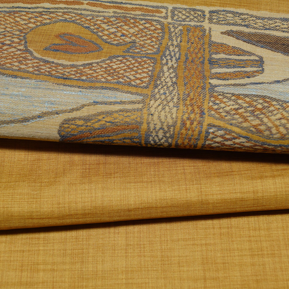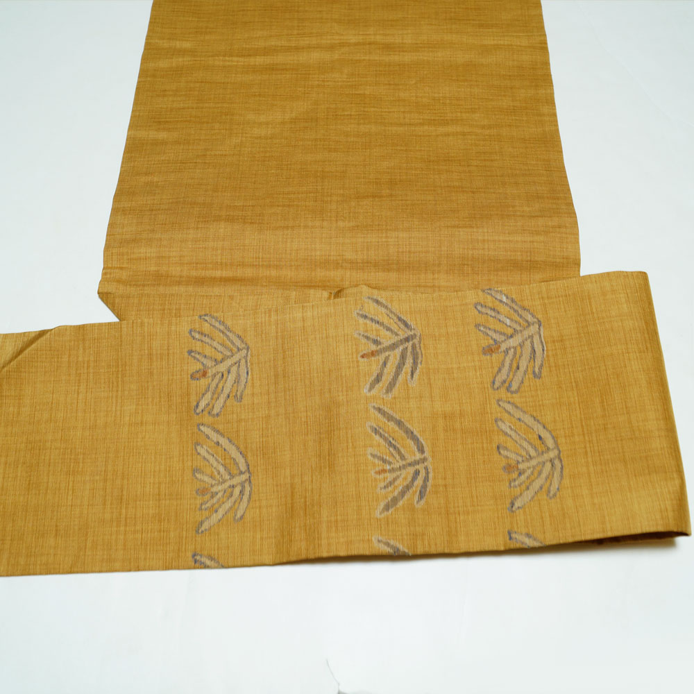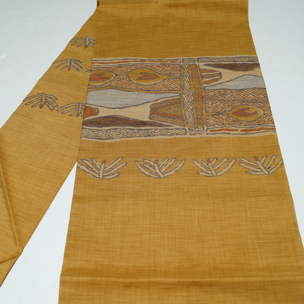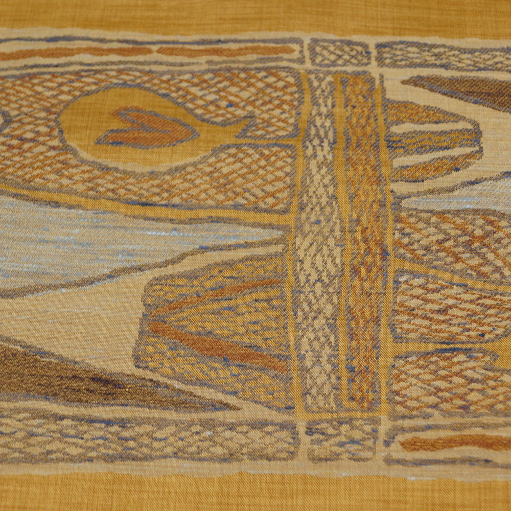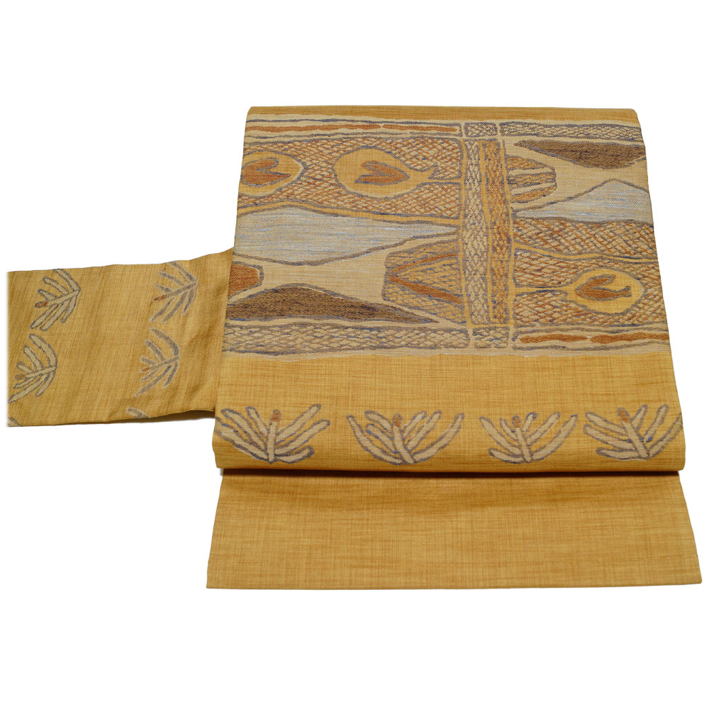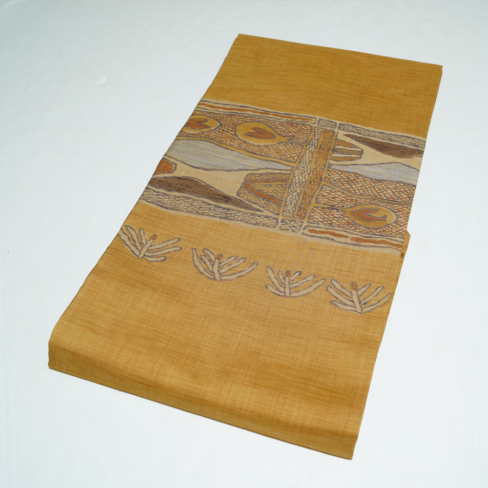 | 商品 説明 | 薄めの山吹茶色系の地に抽象的な模様が織られた名古屋帯です。 |
