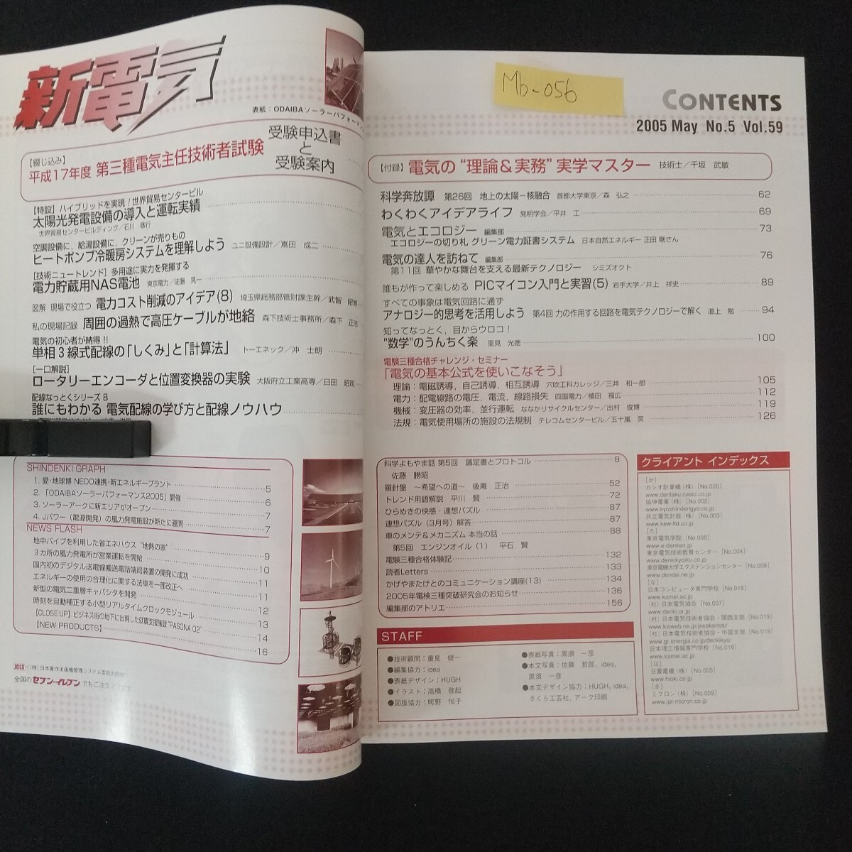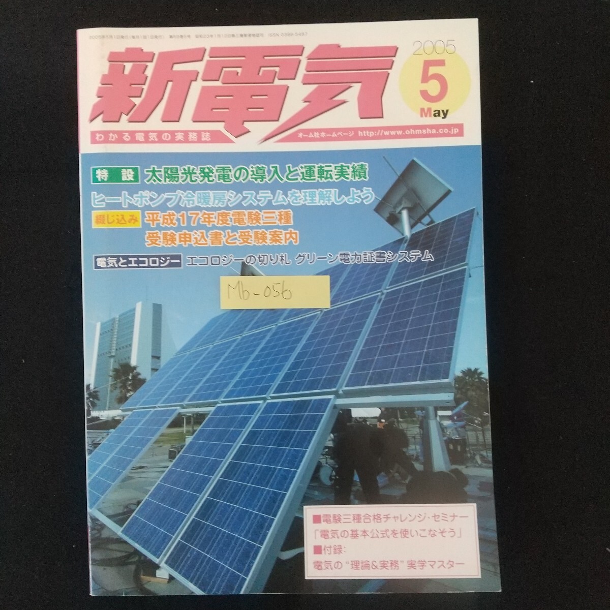 Mb-056/オーム社発行 新電気 2005年5月号 通巻第761号特設 太陽光発電の導入と運転実績 ヒートポンプ冷暖房システムを理解しよう/L2/70305
