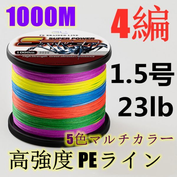 1000m巻きPEライン(5色マルチカラー)1.5号新品1巻きの出品です。