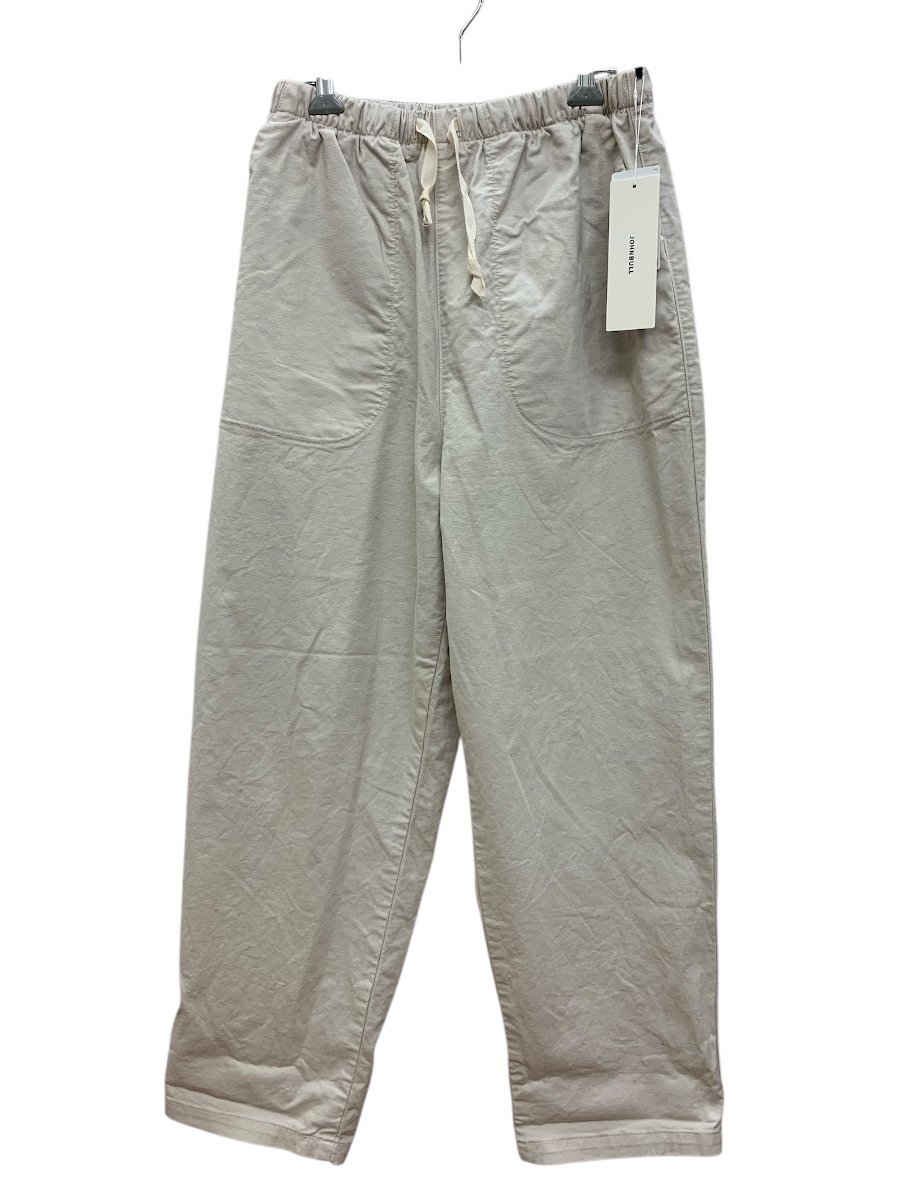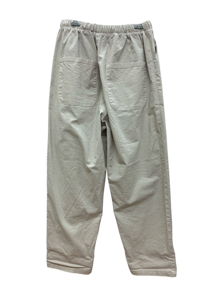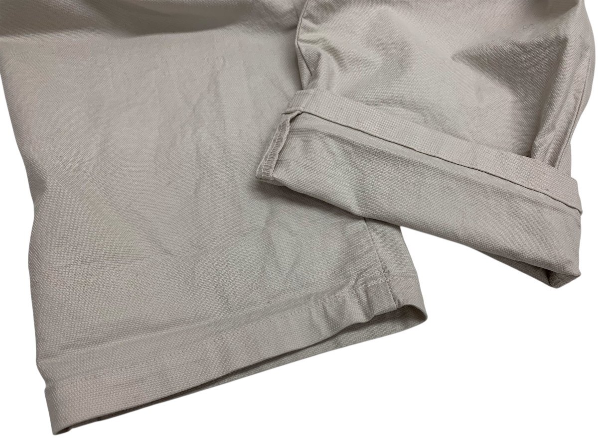 【コンディション】 未使用で綺麗な状態です。 【サイズ】 :L 【素材】 :コットン、リネン、ポリウレタン 【色】 :アイボリー系、ベージュ系 【ウエスト幅】 :約 34.5cm(平置き) 【総丈】 :約 98cm 【股上】 :約 37cm 【股下】 :約 65.5cm 【裾幅】 :約 21cm |