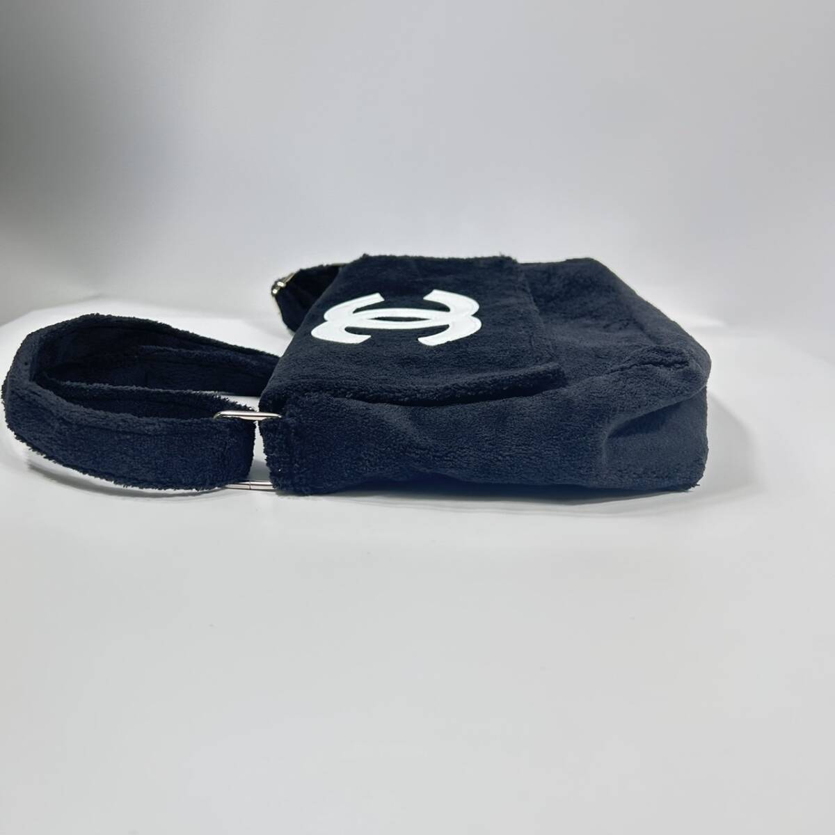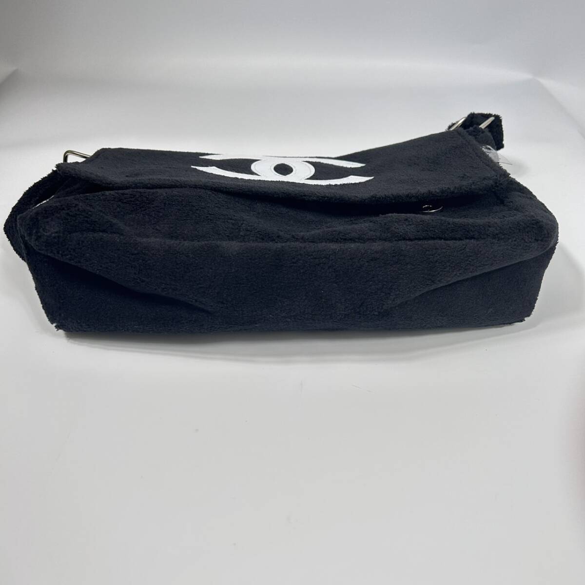 | S② CHANEL シャネル ノベルティ メッセンジャー ショルダーバッグ ショルダーポシェット パイル地 白 黒 ロゴ ココマーク ポケット付き | ||
