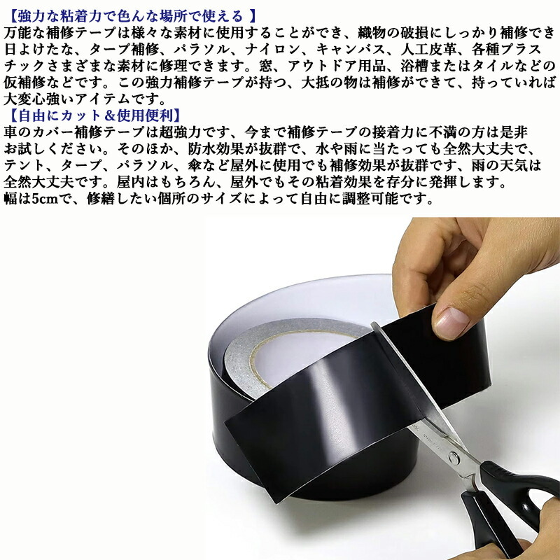 【強力な粘着力で色んな場所で使える 】万能な補修テープは様々な素材に使用することができ、織物の破損にしっかり補修でき、日よけたな、タープ補修、パラソル、まざまな素材に修理できます。