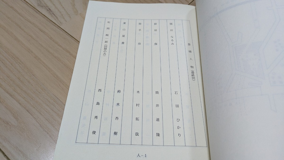 1993年12月20日(月曜日)21時よりフジテレビから放送された「あすなろ白書」最終話・あの頃の君に逢いたい、、、終わることのない愛と青春に・台本。原作)柴門ふみ。脚本)北川悦吏子(「ビューティフルライフ」「素顔のままで」「愛していると言ってくれ」など執筆)。主題歌)藤井フミヤ「TRUE LOVE」。出演)筒井道隆、石田ひかり、木村拓哉、鈴木杏樹、西島秀俊、など。台本は32年前のもので表紙の経年劣化的な汚れ少々、紙の折れはありますが、それ以外は問題なく、普通に読めると思います。大変貴重なものだと思われます。