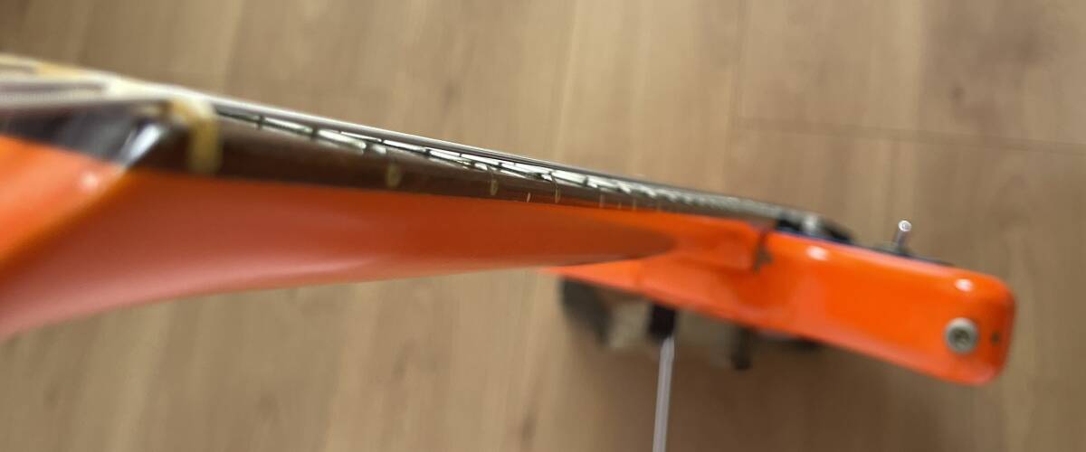ご閲覧ありがとうございます。 必ず記載内容にご理解いただいた上で、ご入札をお願い致します。 ■商品説明 ・商品内容:ギター本体+ソフトケース ・中古品(動作品/外観ダメージあり) 入手困難な物かと思いますので、お好きな方いかがでしょうか。 ▼その他画像は下記にて掲載しております。 なるべく細かく撮影いたしましたので、ご納得のうえご入札ください。 ギター全画像①(20枚)リンクはこちら ギター全画像②(19枚)リンクはこちら ソフトケース全画像(6枚)リンクはこちら ■状態 ・通電:OK ・音だし:各ピックアップ問題なく確認 ・ノイズ:元からの仕様かわかりませんが、高音周辺に「ピー」がのります。 主観ではノイズゲートを挟むと消えますが、気になる方はメンテナンスをされた方が安心かと思います。 ・ガリ:ボリュームノブ、ガリ無し/トーンノブ、ガリあり ・ナット:欠けあり/ヒビあり ・フレット:少し削れはありますが、特に問題ない範疇かと思います。 ・指板:汚れあり ・ネックの反り:普通に弾く分には全く気にならない範疇かと思いますが、極極僅かに順ぞりに見えるような感じがします。 ・トラスロッド:知識がなくわかりません、申し訳ありません…。 ・本体外観:各所に傷/汚れ/へこみ/塗装割れ/パーツ割れ/穴/等のダメージがあります。 ・本体ノブ:トーンノブ欠品しております。(様々なタイブの物が500円~1,000円位でで販売されていますので、お好みの物付け替えいただければと思います。) ・ソフトケース:破れあり。金属部が壊れていますが、ファスナーの開け閉めはなんとか出来る…という状態です。 ※素人の簡易チェックのみとなります。異なる環境下での動作や安定性等全てを保障するものではございません。 ※動作のサポートや不具合の返品等は対応致しかねますので予めご了承ください。 簡易清掃は行っておりますが、細部や金属部等までは行き届いておりません。 状態に関しましては、画像もあわせてご確認ください。 また、古い物のため経年劣化もございます。 自宅保管の中古品という事をご理解のうえご入札をお願いいたします。 お支払い方法や送料等について ■梱包と発送 リサイクル資材を用い梱包いたします。 ご入金確認後、翌々日までに発送手続きをいたします。 郵便局の連休が重なる場合は、翌営業日での発送となります。 ■お支払い方法や配送方法と送料 概要欄にてご確認くださいませ。 | |||