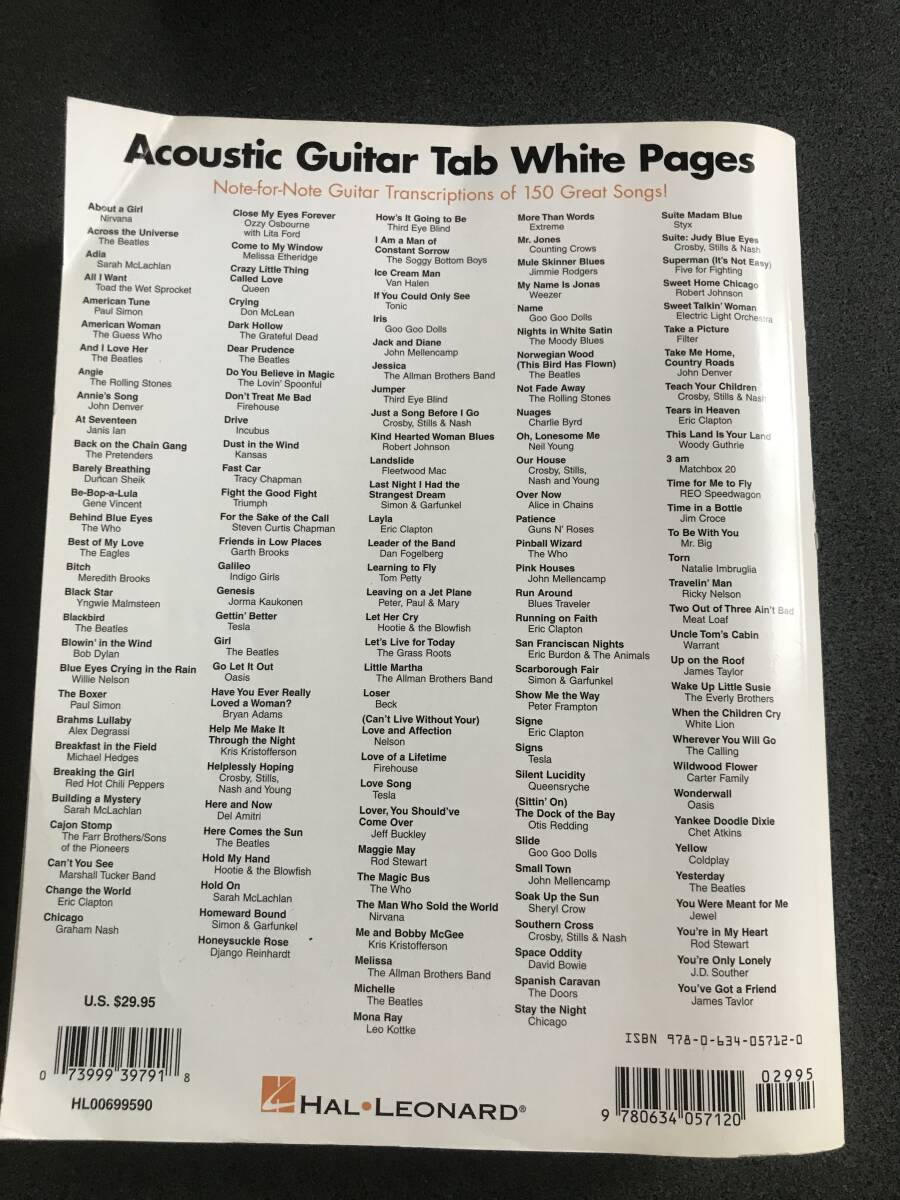 | 表紙にもあるように、150曲以上を収録し、1,000ページを超える非常に分厚いボリュームの楽譜集です。アコースティックギターの名曲、人気曲が、ギタータブ譜(TAB譜)と五線譜で忠実に採譜(Authentic Guitar Transcriptions)されています。