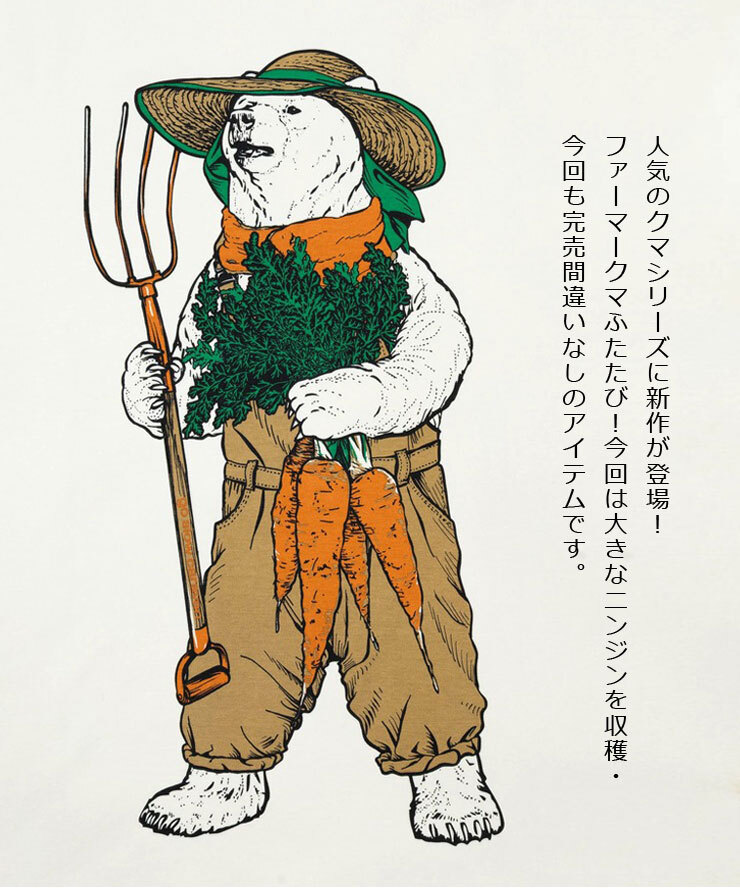 フロントには、ピエクレックスの堆肥で育てられる野菜・にんじんを持ったクマのプリント。高密度で編まれたハリのあるモックロディー素材で、着心地と見た目の上質感を両立しています。| 出价者 | 信用 | 价格 | 时间 |