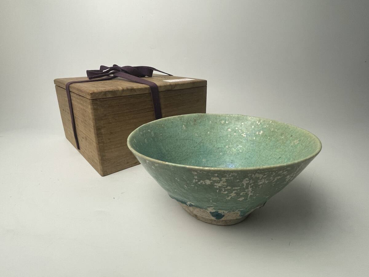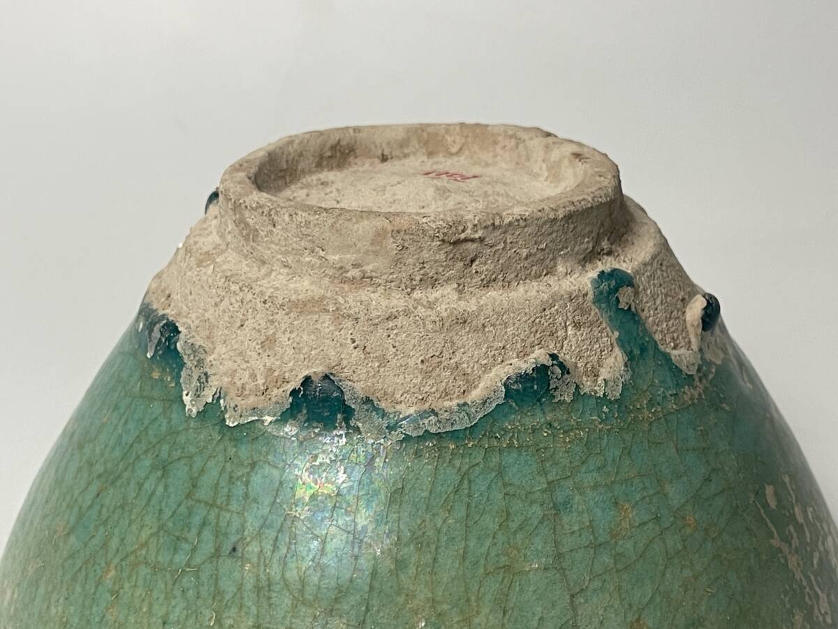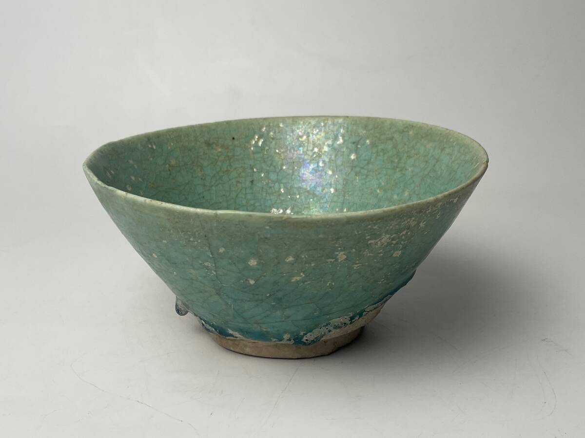 古美術品 十二・十三世紀 アケメネス朝 ペルシャ青釉銀化鉢 イスラム陶器 グルガン 青釉 出土品 高さ約8.5cm |