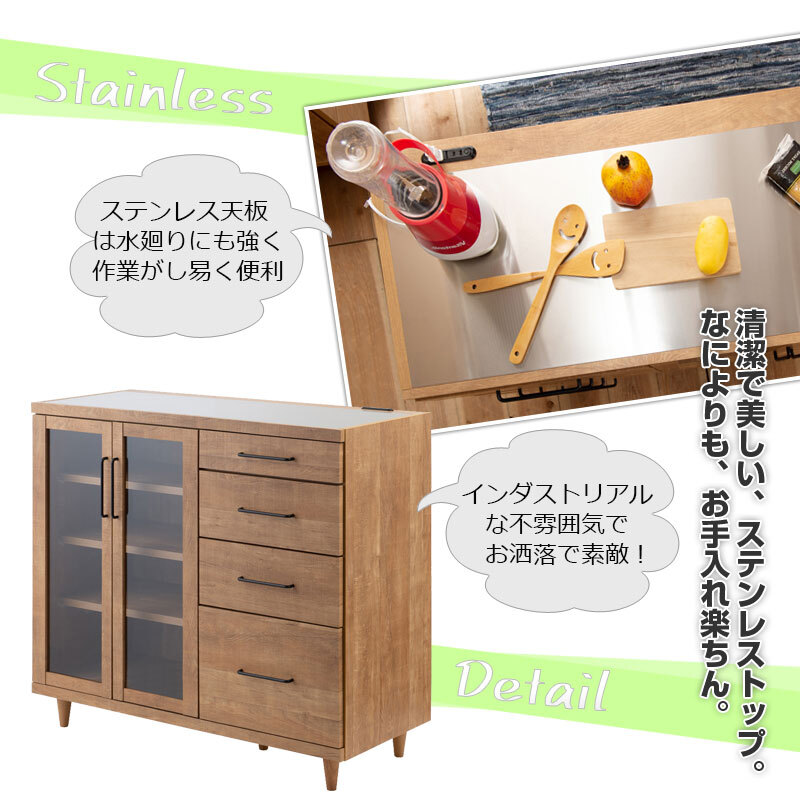 ■商品について/ライトブラウンを基調にヴィンテージ感のある雰囲気に仕上げたスティングシリーズ。引手はスチール製で細いシルエットの外観に反し、触れるとその重厚感が感じられる仕様。脚部・引手の丸み感と本体の直線的デザインとの違和感がほどよくマッチし直線だけでは得られないやさしさが毎日使いたくなるカウンターに仕上がりました。天板にステンレスを施しちょっとした作業もでき、スタイリッシュな雰囲気に。コンセントも完備で使いやすさも追及しています。また間仕切りとても使えアイランドキッチンのような使い方もGood。| 出价者 | 信用 | 价格 | 时间 |