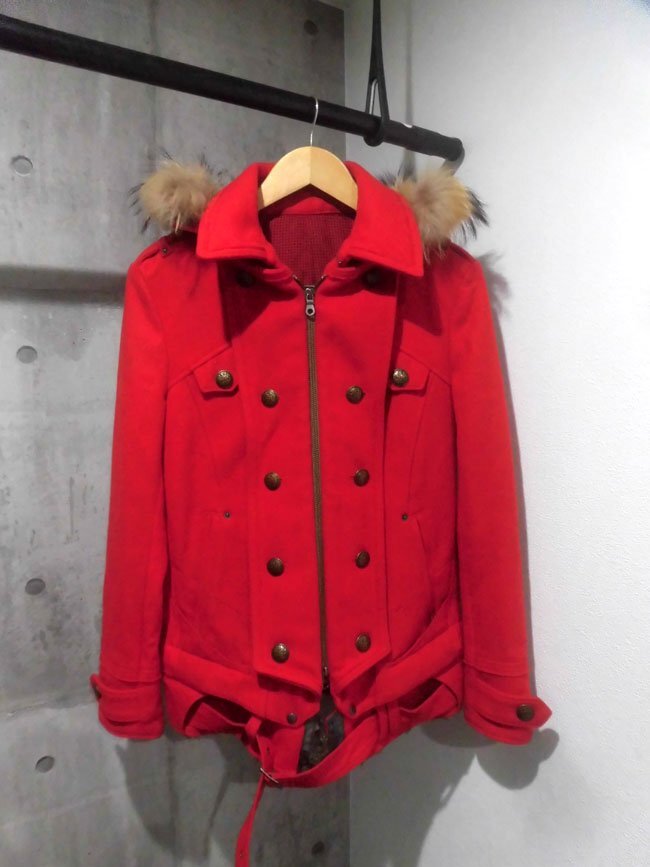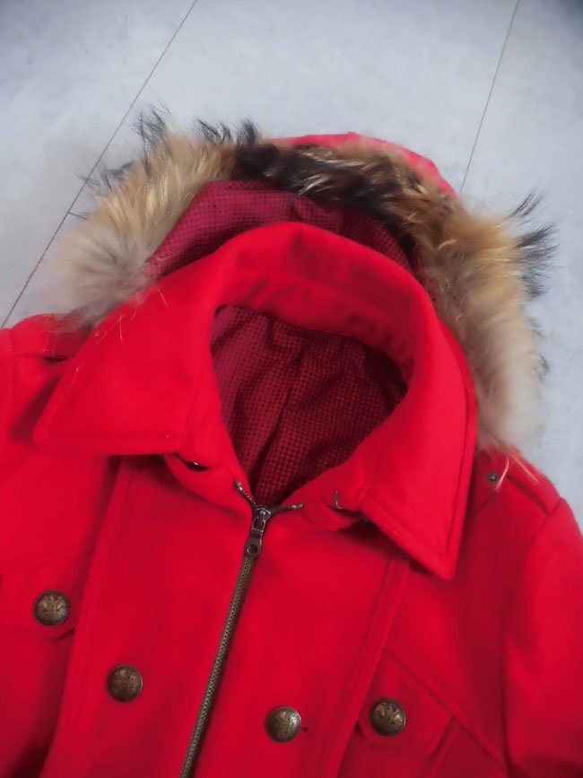 | 商品の詳細 | 商品名 | PPFM ピーピーエフエム 00s Gimmick Jacket ミリタリー ウール ナポレオンジャケット S/ファーフード付き ギミックコート/赤 レッド/メンズ 4737 |