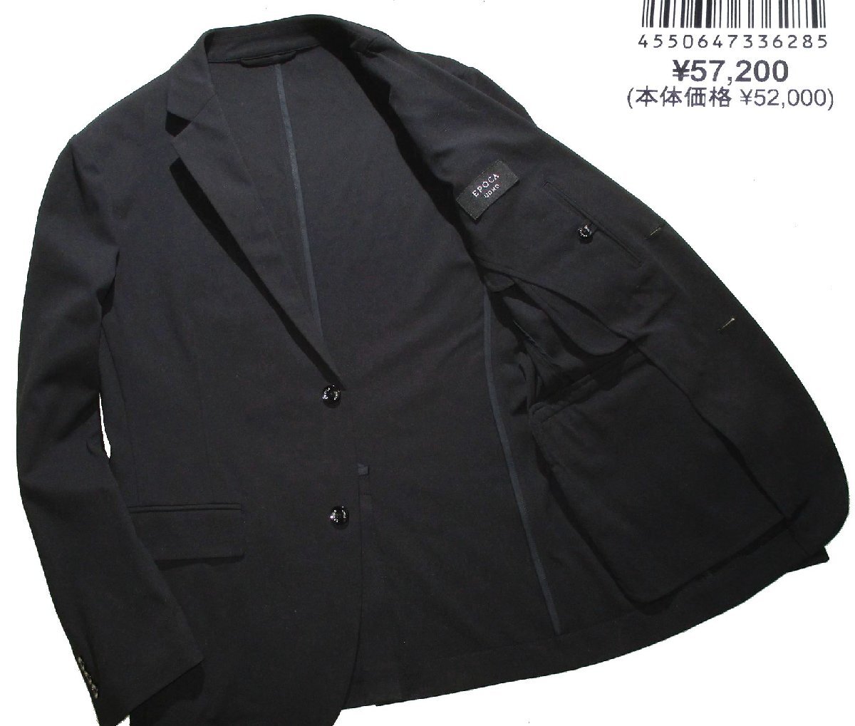 新品 秋物 48 L 定価5.72万▼ エポカ・ウォモ EPOCA UOMO ▼ ジャージー 2ボタン テーラードジャケット 内ポケット 黒 ブラック メンズ