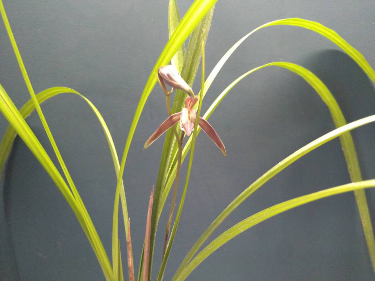 | M-185:日向寒蘭 ・栽培棚整理品・栽培品: 紺覆輪柄の紅花種 | |