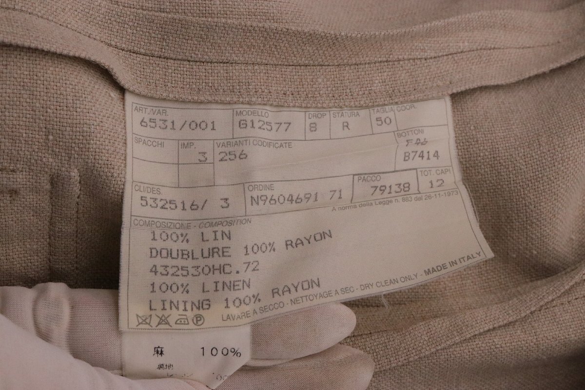 | HERMES エルメス リネンジャケット サイズ50 PURE LINEN イタリア製 グレージュ ベージュ 5ボタン | ||