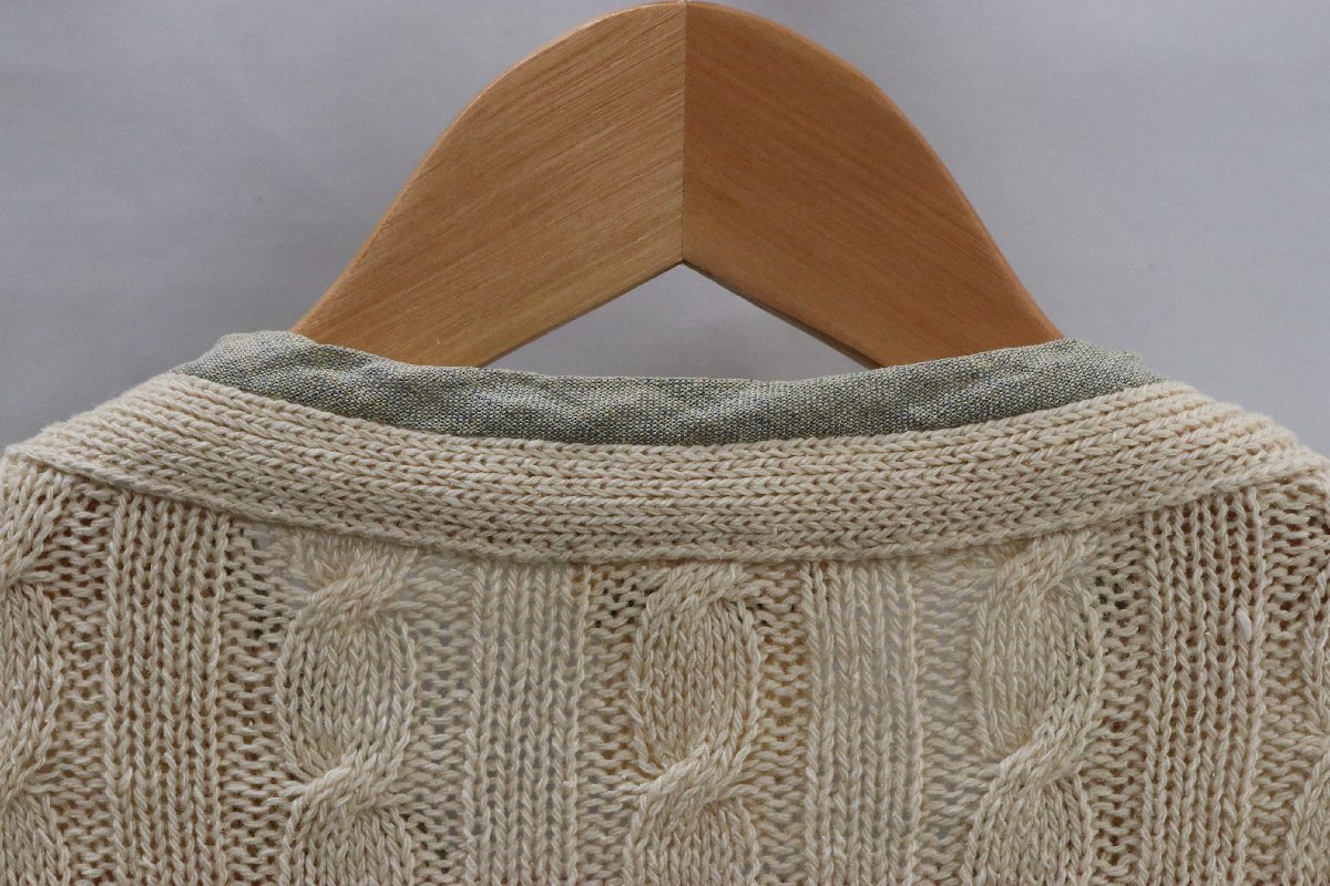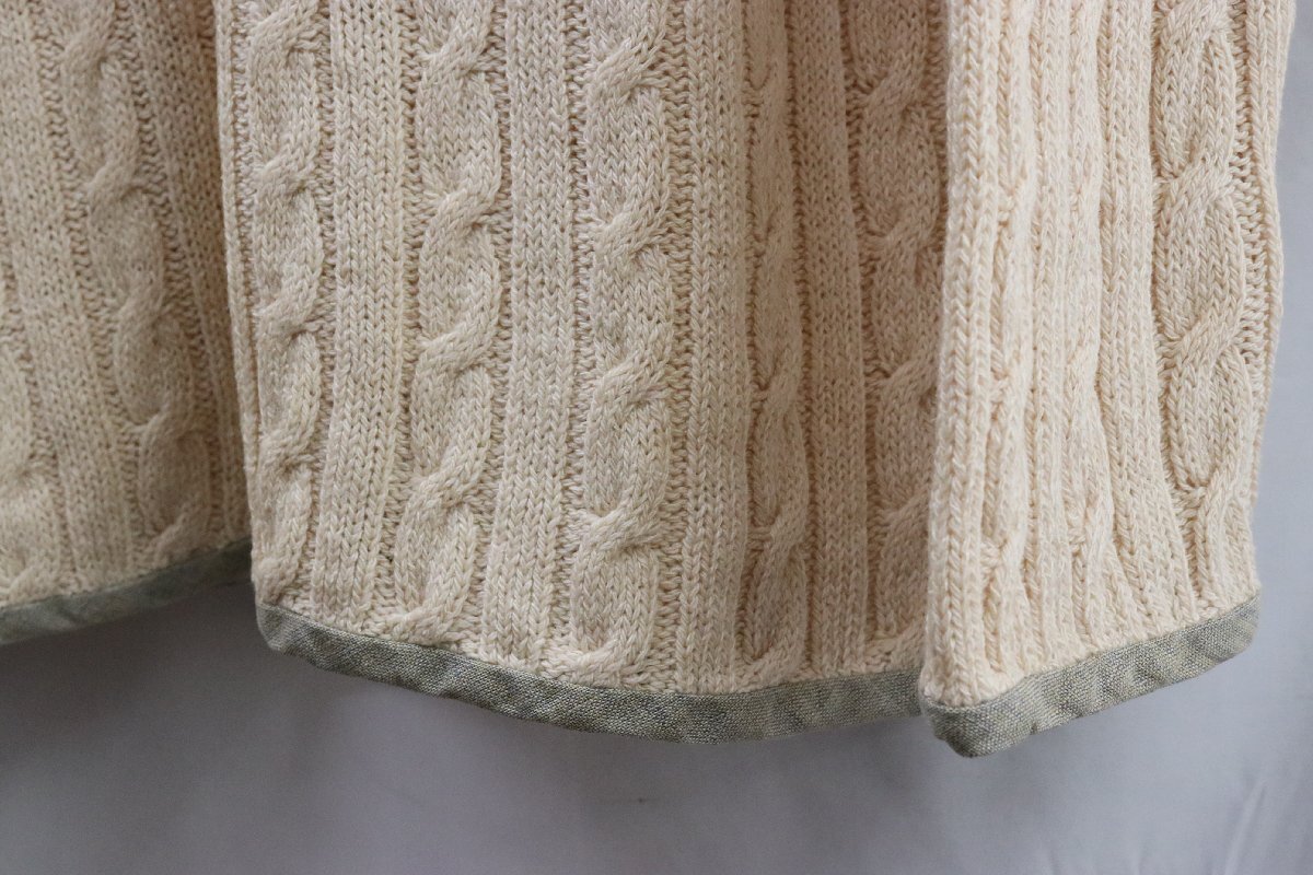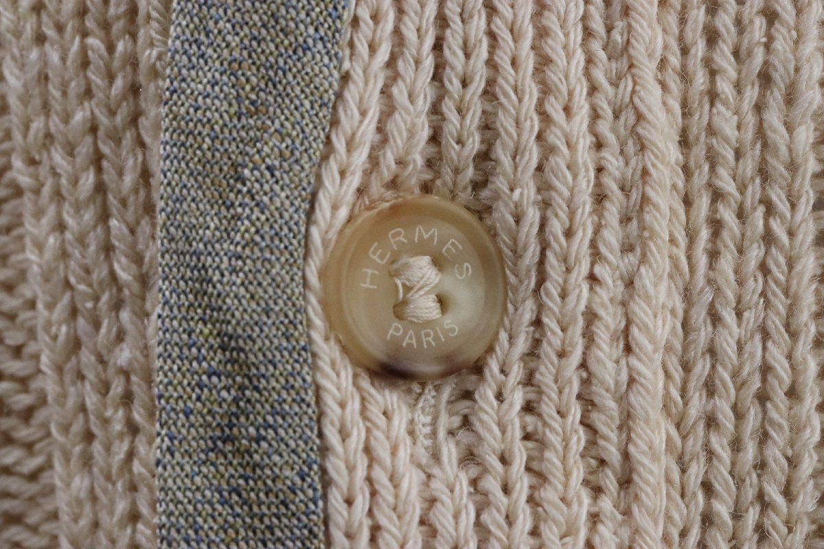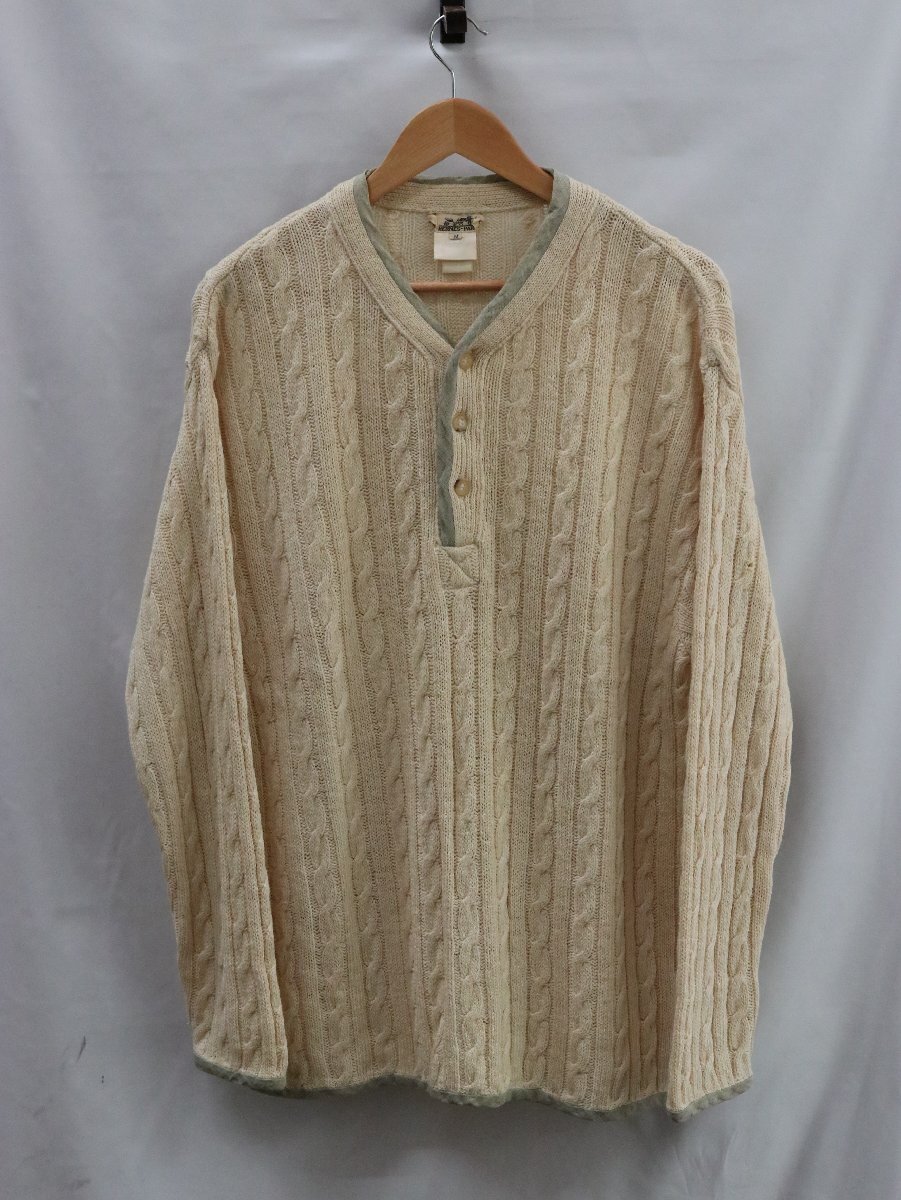 | HERMES エルメス ヘンリーネックケーブルニット サイズM リネントリム ウール・シルク・リネンニット ベージュ | ||