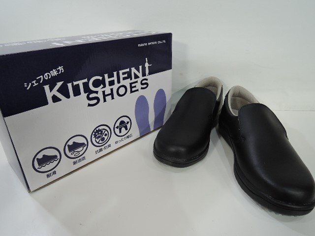 | 水野産業 シェフの味方 キッチンシューズ 黒 27.5cm 199996 耐滑/耐油底/抗菌・防臭/ゆったり幅広 経年保管品/中古美品 | ||||