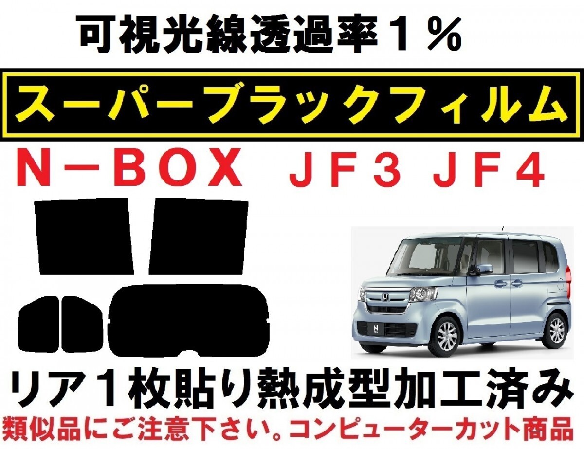 JF3 JF4 N-BOX用スーパーブラック『可視光線透過率1%』1枚貼り成型加工済みフィルム リア5面セットです。(専用施工液付き) 平成29年9月~ JF3 JF4 N-BOX N-BOXカスタムに適合します。 ※適合等 ご不明な事など御座いましたら、お気軽にご質問下さい。 ◇◆◇施工に便利なプロ仕様のヘラセット付き商品も出品中です◇◆◇ こちら ◇◆◇精密コンピューターカット◇◆◇ 貼りやすさを最優先に各部のサイズ・形状など微調整し、改良を重ねた独自のデータを製作。 高精度な最新・大型カッティングプロッターによるカットで正確で滑らかなカットラインを再現しています。 施工業者だからわかる、貼りやすいサイズ・形状に仕上げています。 ◇◆◇リア1枚貼り成型加工済み◇◆◇ リアガラスの湾曲に合わせて熱成型加工して有りますので、平面に貼るのと同様にたるみが出ず1枚貼り出来ます。 ※最適な状態に成型加工して有りますので、ヒートガン(ドライヤー)等は不要です。 ◇◆◇専用施工液付属◇◆◇ 軽視されがちな施工液ですが、貼りやすさに大きく関わる部分になります。中性洗剤などで代用せず、必ず付属の専用施工液をご使用下さい。 濃度については車種・季節などにより変わりますので、個別にお知らせ致します。 ◇◆◇業務用高品質フィルム使用◇◆◇ 使用しているフィルムは、安心の国内メーカー 業務用高品質フィルム「ニュープロテクション」シリーズです。(可視光線透過率1%) 業務用フィルムの中で最も濃いタイプで、紫外線99%カット 遮熱性も高めです。 同シリーズで可視光線透過率 5% 10% 15% 25% の物もご用意出来ます。 ご希望の場合は、ご落札後濃さの指定をして下さい。(部分的な色変えも可能です) ご指定の無い場合、全て1%になります。 部分的にフィルムが必要になった場合、単品販売も承ります。 他にもN-BOX用フィルム、各種出品中です。こちらもご覧ください。 ご不明な点など有りましたら、お気軽にご質問下さい。 | ||