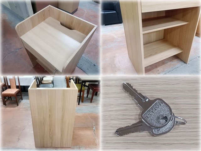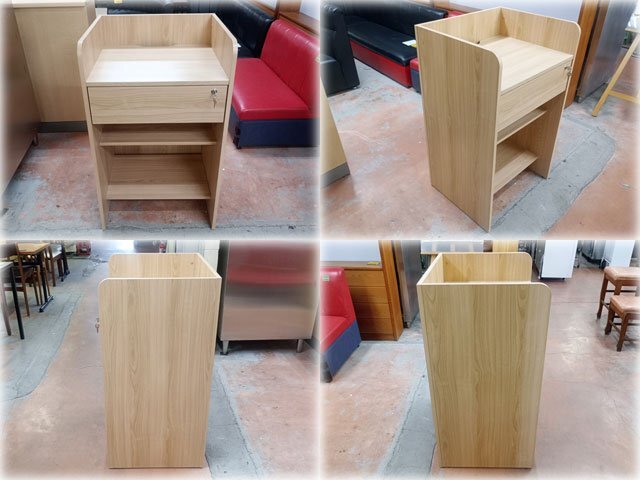 レジ台(レジカウンター) を出品いたします。 ■特徴■ シンプルなレジ台(レジカウンター)です。 天面中央に配線孔があり、 綺麗な配線処理が可能です。 引出しにはカギ付です。 あらゆる空間になじむ 明るい木目調です。 目立った大きな傷みはなく キレイな状態です。 写真に写っている周りのものは付属しません。 発送はアート家財おまかせ便でお送りします。 新品ですと2万円前後の商品です。 格安出品いたしますのでこの機会をお見逃しなく! |